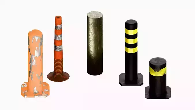 Traffic GameReady Bollards with 2 Materials Low-poly 3D model