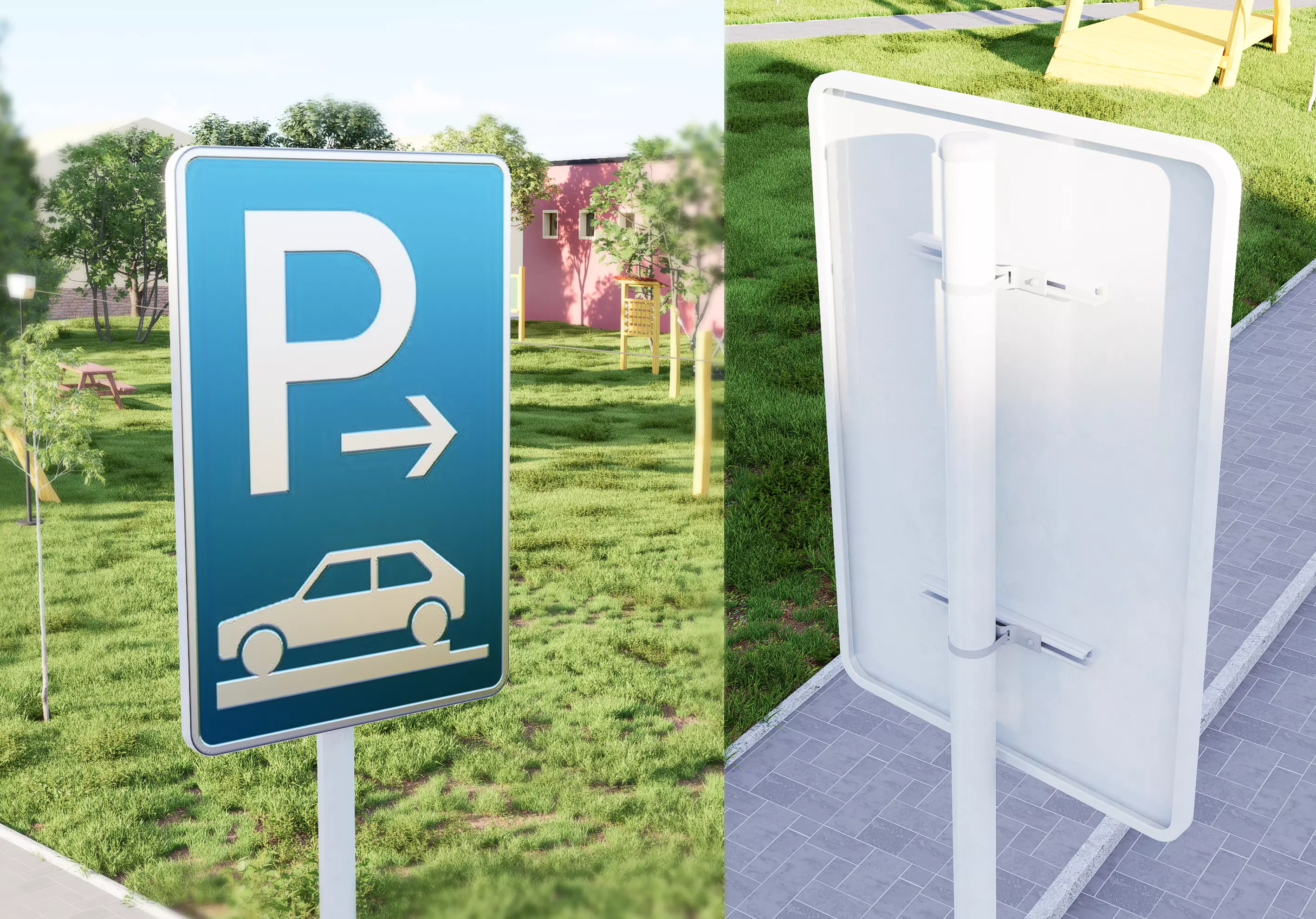 Consistent UV mapping — all signs share a unified texture workflow for easy customization.Realistic steel pole material with weathered metallic effects for added authenticity.Organized file structure — every sign is separated for fast workflow integration into basic classes (round, rectangle etc).