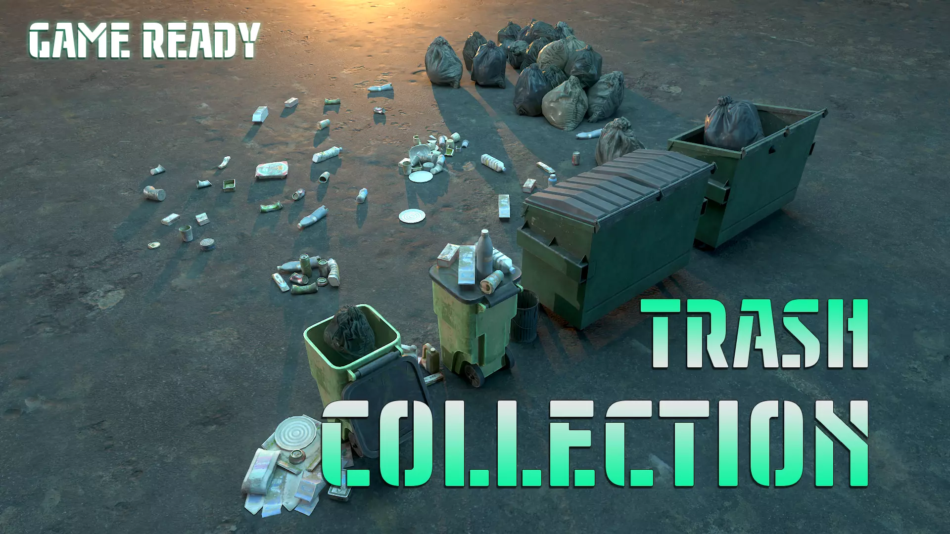 There is a collection of 3d garbage models, as well as various types of garbage containers. All models are fully game ready.