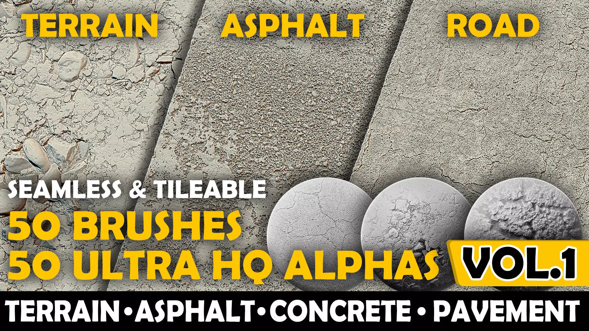 *Ultra HQ Seamless Terrain / Asphalt Sculpt brushes + Alpha/Height maps set. *
