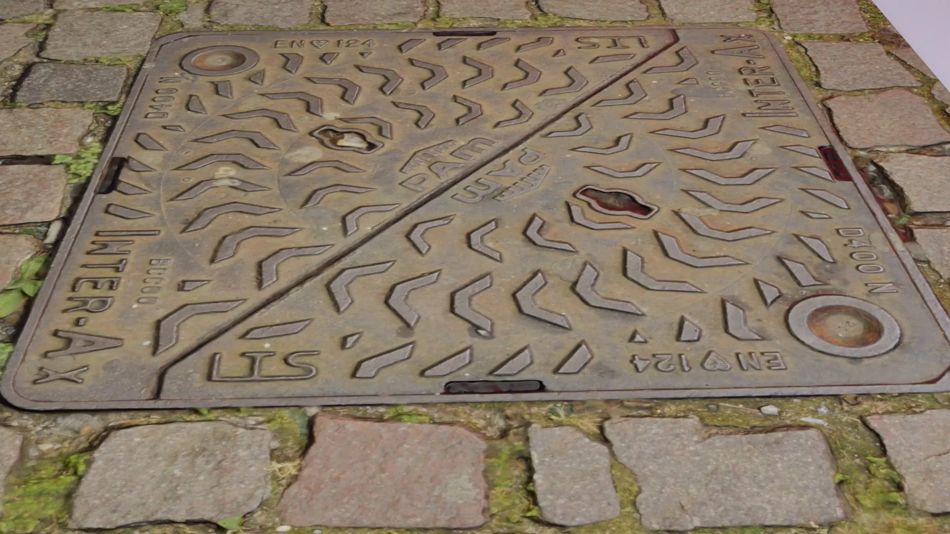 This is a photorealistic low poly 3D model of iron cover manhole measures 55x55cm.