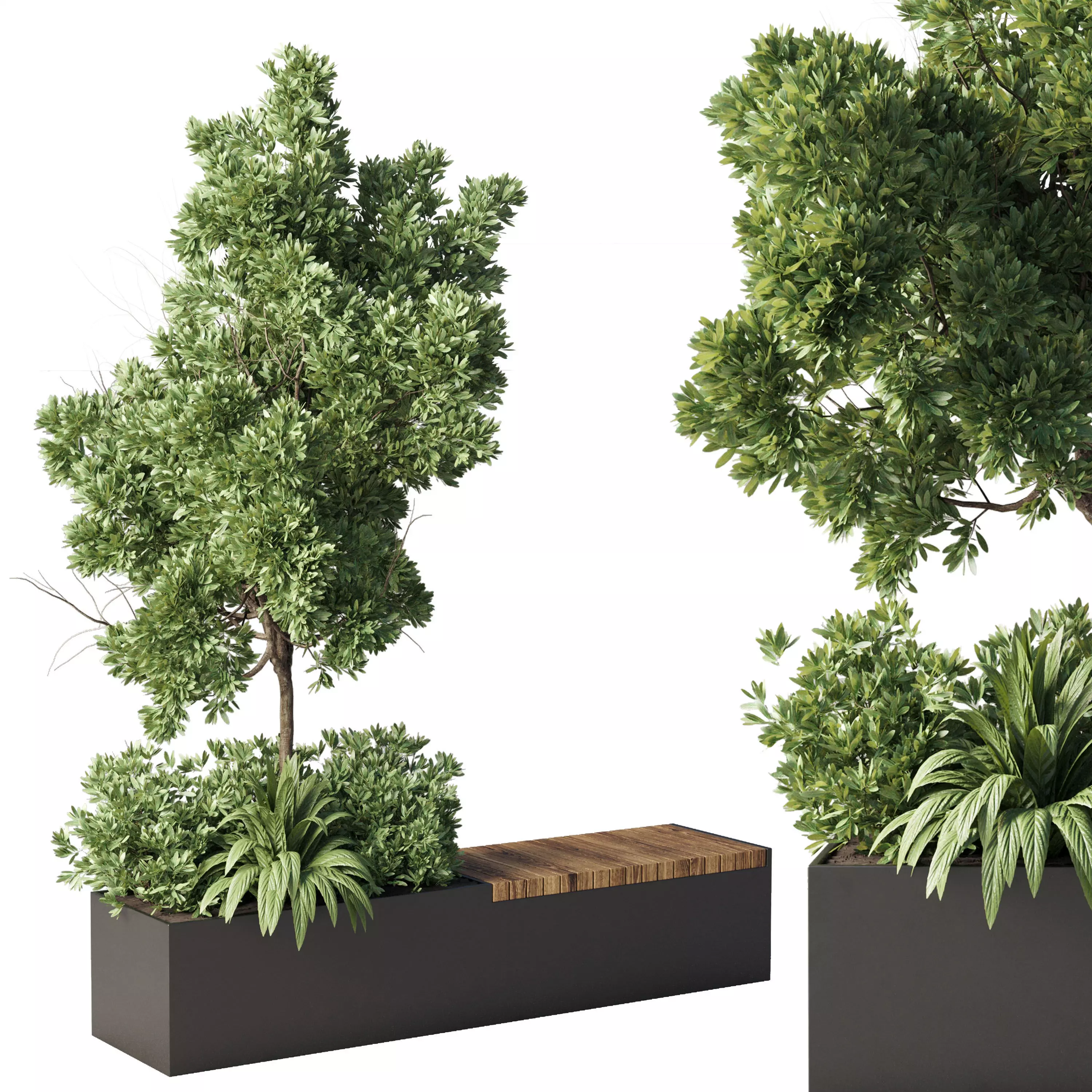 Urban Environment - Urban Furniture - Green Benches With plants 32