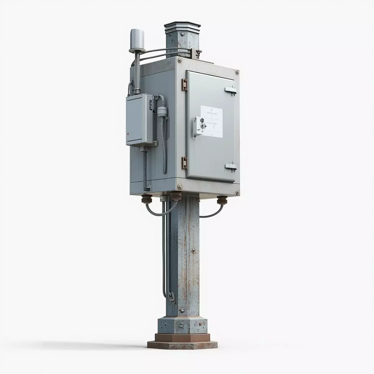 Key FeaturesDetailed Technical Casing: Features a large primary electrical cabinet with high-fidelity details such as access panels, heavy-duty hinges, and a secondary side-mounted junction box.