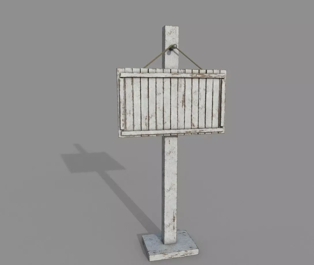 Wooden PBR White Signpost Low-poly 3D model