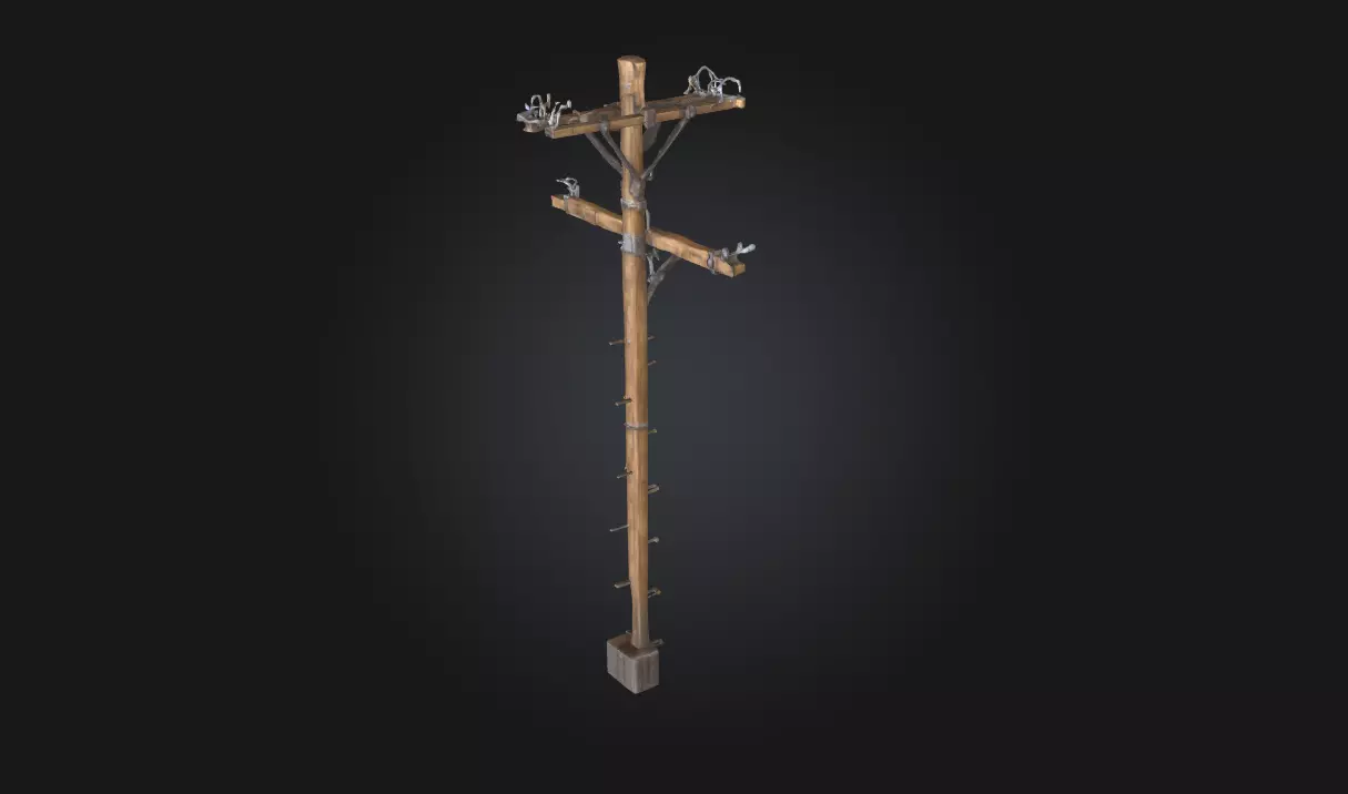 The Wooden Utility Pole model represents a sturdy, weathered pole commonly used for electrical lines and telecommunication wiring. Ideal for urban, rural, or industrial environments, this asset adds realism and scale to outdoor scenes.