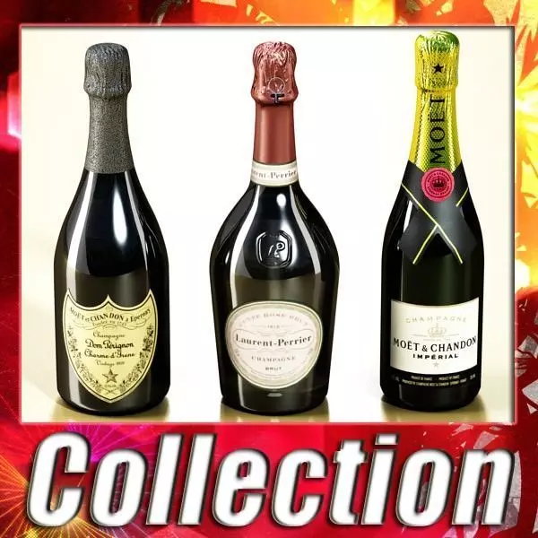 Photorealistic and High Detailed 3 Champagne Bottles Collection.