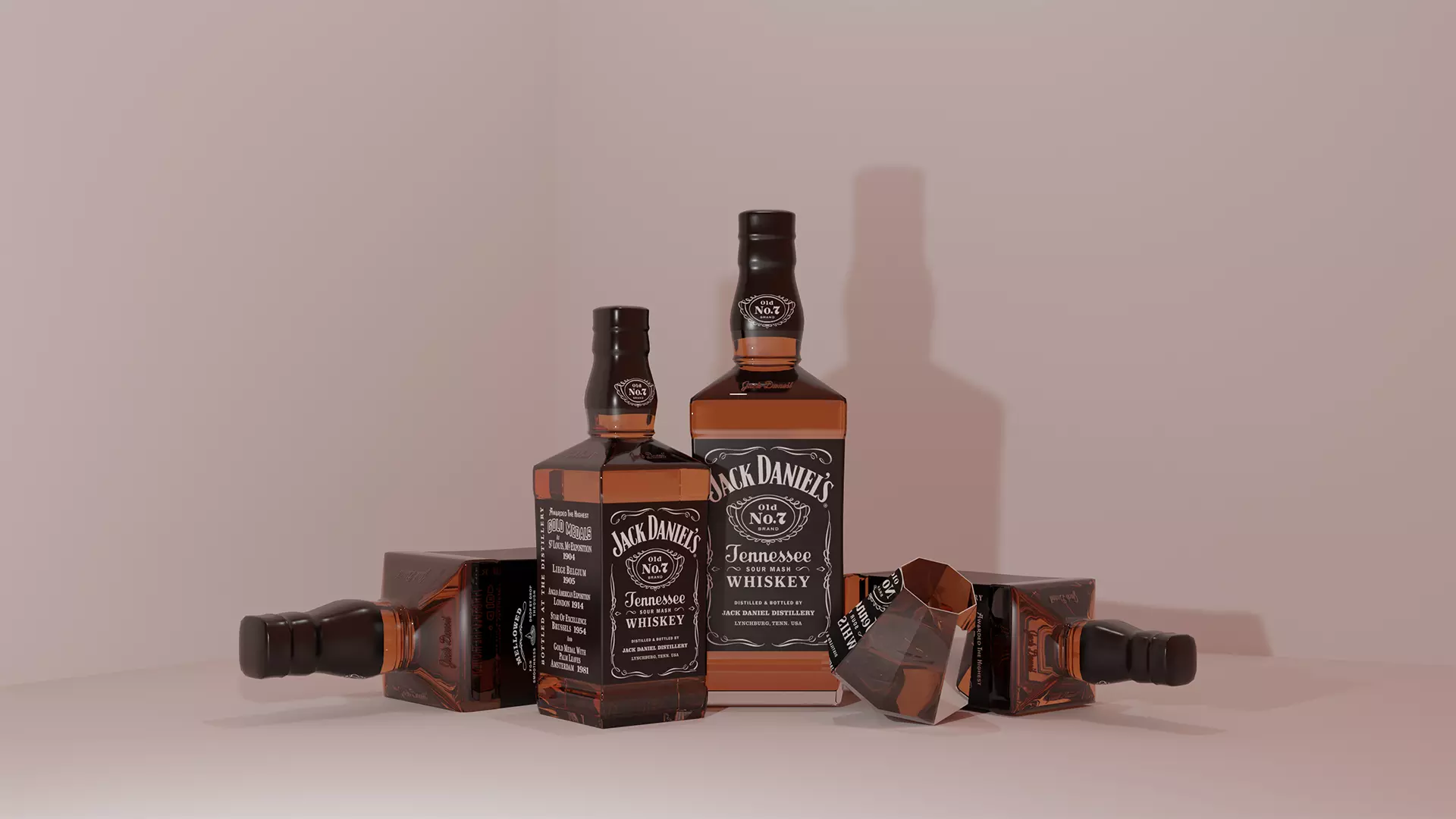 Alcohol Bottles 3D Model Low-poly 3D model