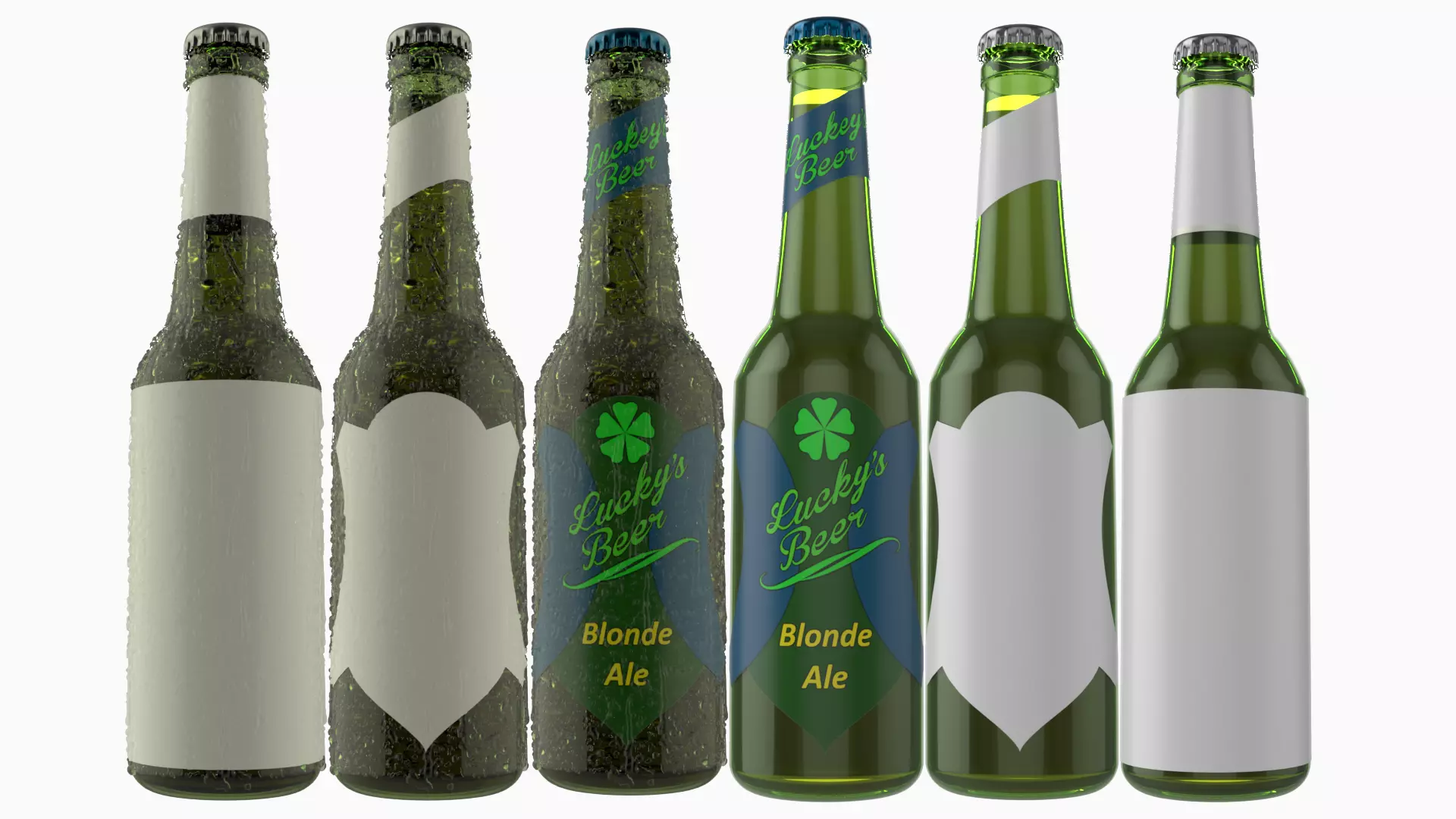 Beer bottle with and without condensation. All quad poligons.Files:.ma scene file without condensation.ma scene file with condensation.obj file without condensation.obj file file withcondensation.fbx file file without condensation.fbx file with condensation.spp Substance painter fileRender PSD FilesLabel Example PSD Files
