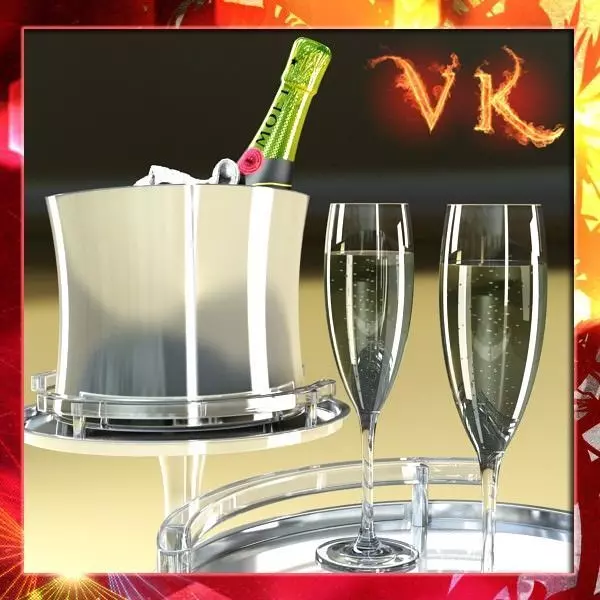 Photorealistic and High Detailed Champagne Set - Bottle, Flute and Ice Bucket.