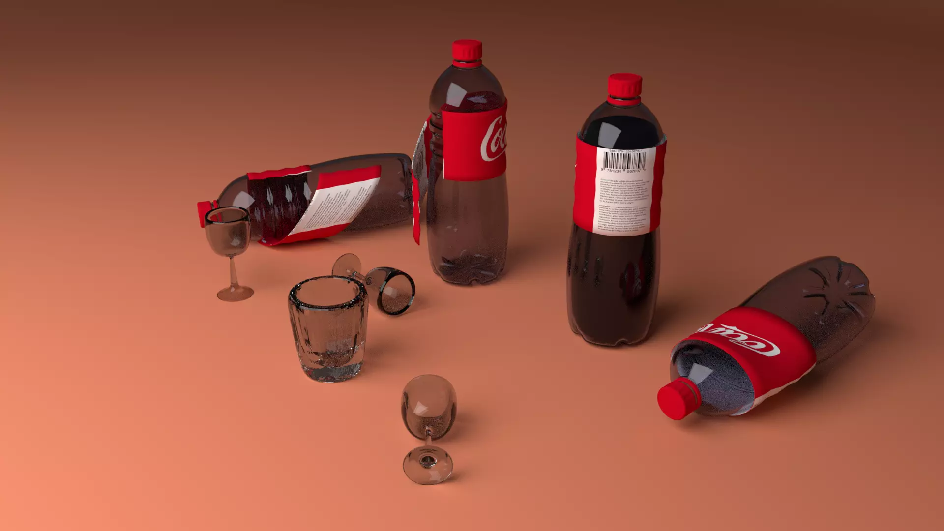 coke bottle and class Low-poly 3D model