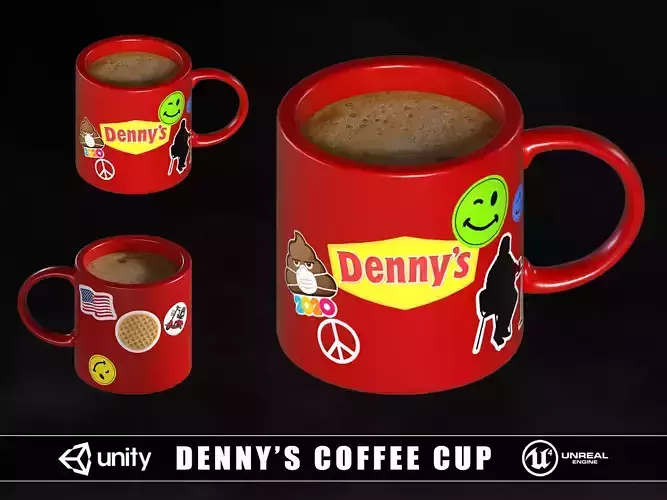 Denny's coffee / hot chocolate 3D model. Modeled in Maya and textured with Substance Painter and Photoshop. The model is built to scale and is UV unwrapped with 2k Textures. Includes 3D model and textures!