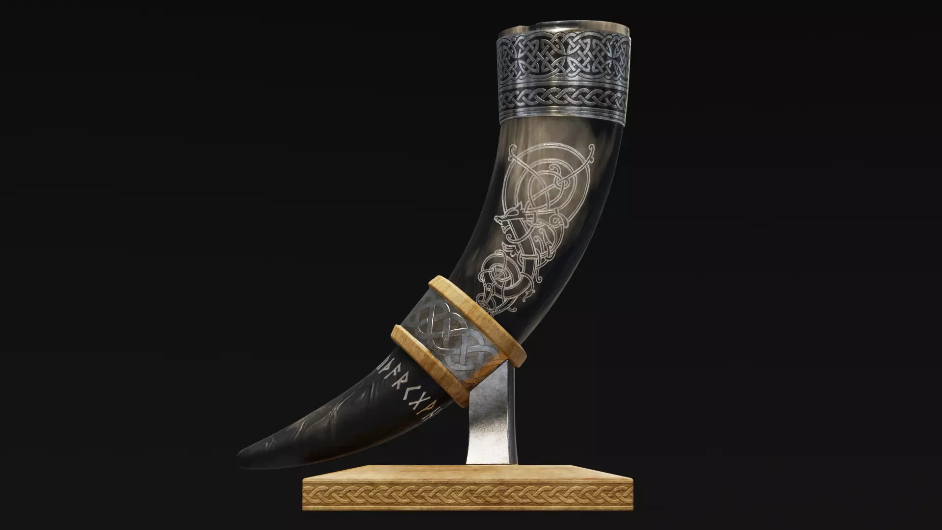 THIS MODEL CONTAINS:1 Decorated Drinking Horn and a base