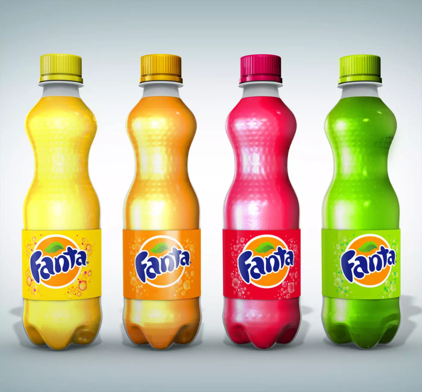 Four Fanta bottles, Cocktail, Orange, Strawberry and Apple 3D models