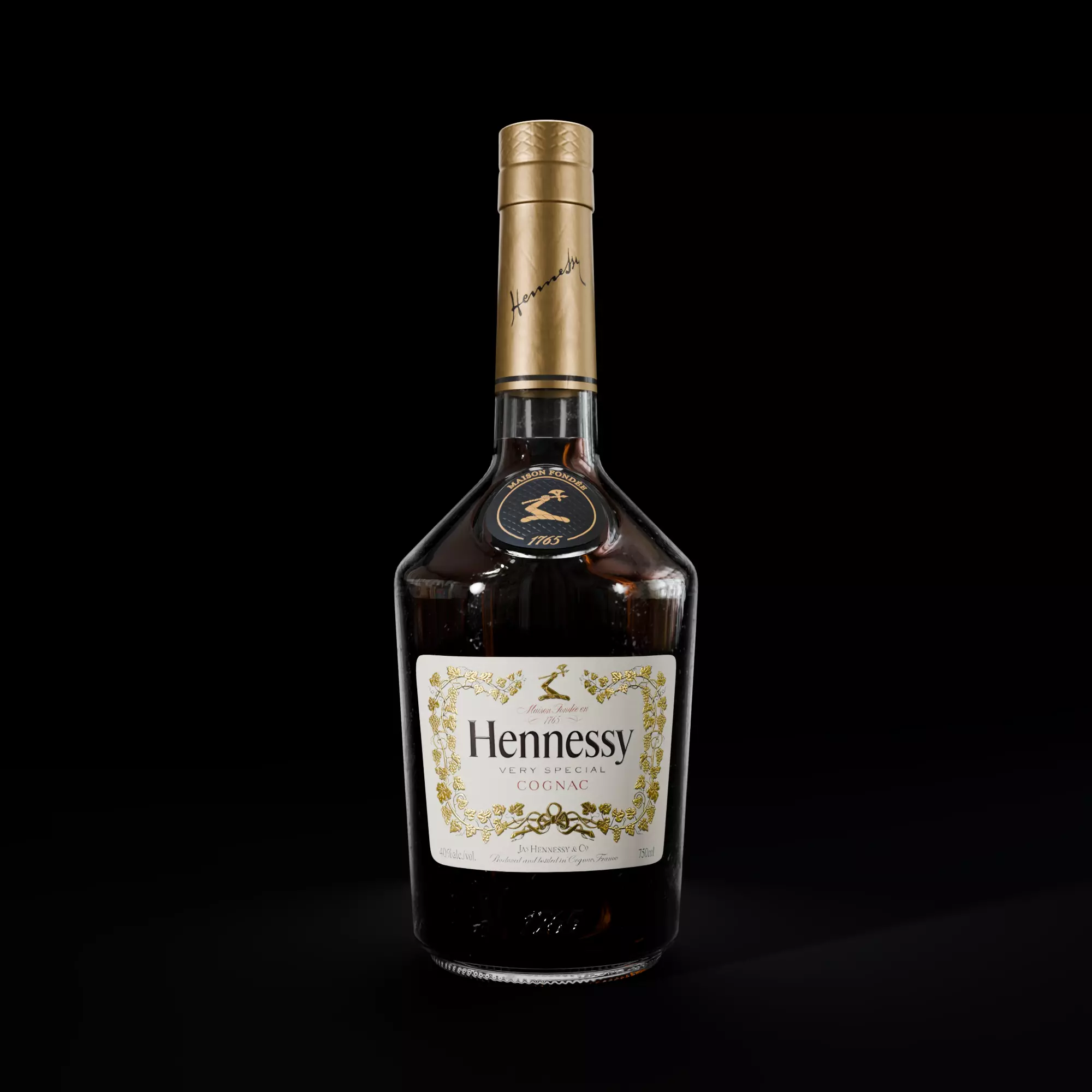 3D Model of a Hennessy VS Cognac 750ml bottle.