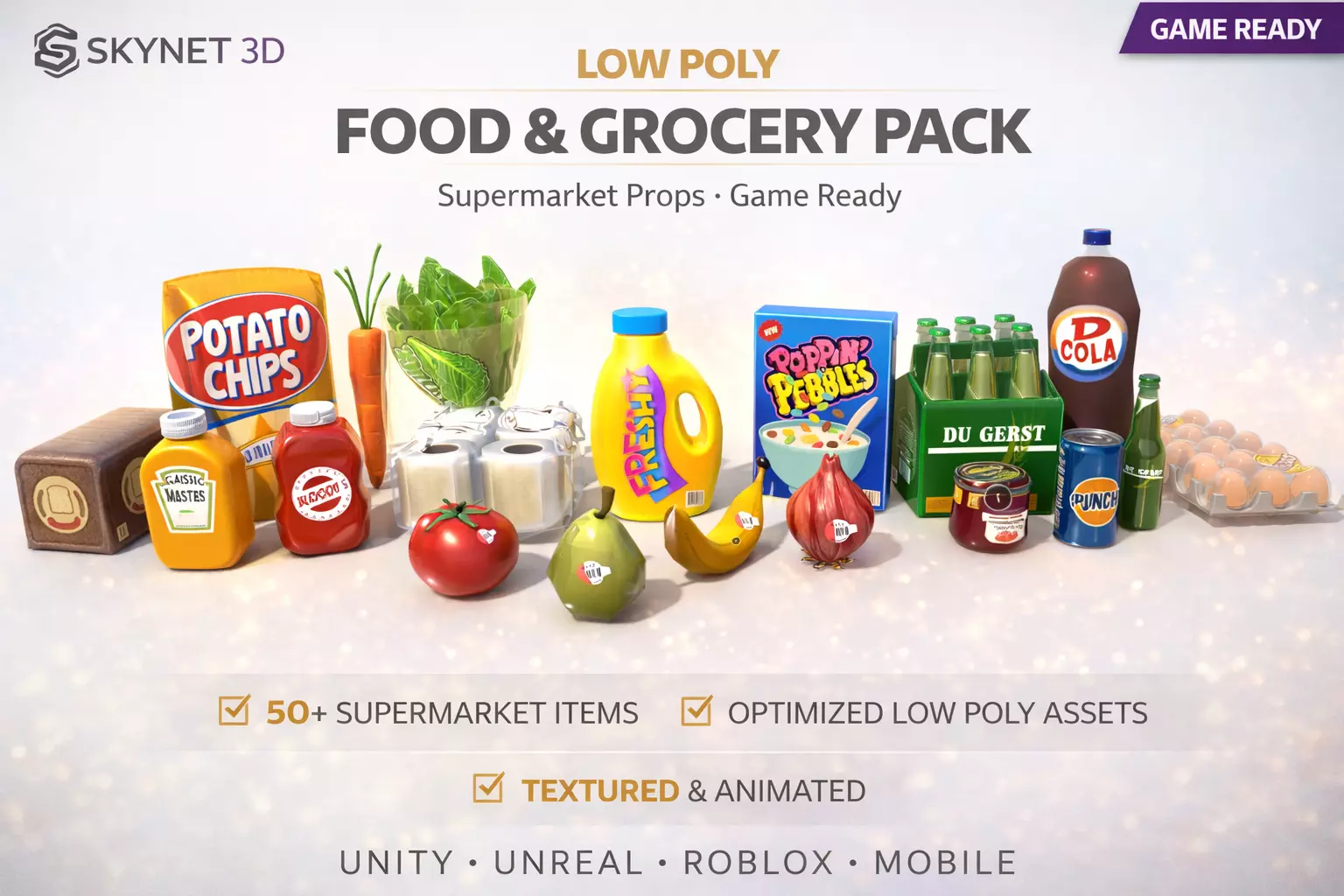 High quality low poly food and grocery pack designed for games simulations and real time applications