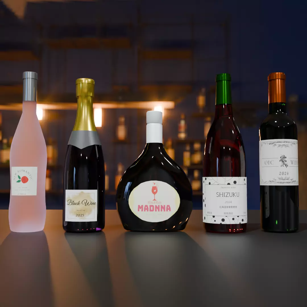 This is a 3D model of a set of wine bottles designed in low polygon in Blender. It features elegant and realistic textures and is ideal for interior visualization, promotional videos, game production, etc.