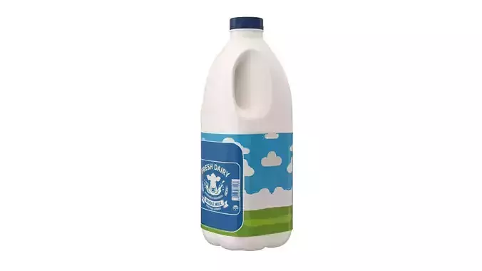 milk bottle 3d model, procedural 3d model, game ready prop, pbr bottle texture, 4k baked textures, kitchen prop 3d, blender milk bottle, unreal engine food prop, unity beverage container