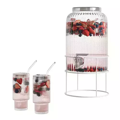 • Glass drink dispenser with stand. The color of the stand can be easily changed in the material itself.