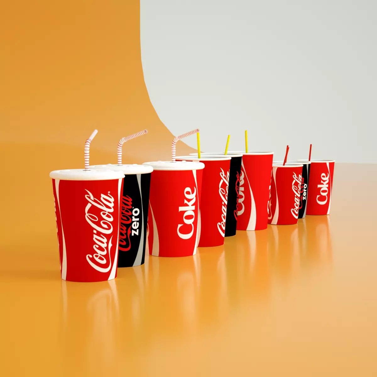 High quality set of Cola-Cola (Coke) cups - textured and detailed for close-up renders.