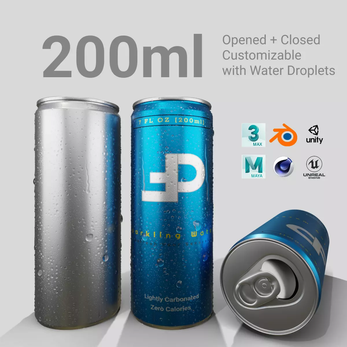 Take a look at this realistic, customizable slim 200-ml drink can, designed with much care so it depicts the real-world beverage can. This model has realistic, high-quality materials. It meets the high standards of 3D models; it can be suitable for any of your projects or render scenes.