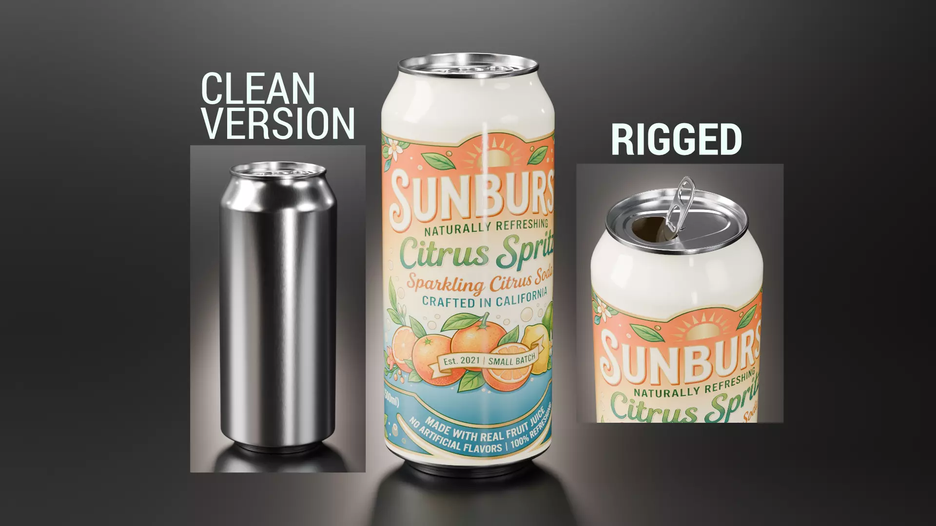 High-quality model of a 12 oz (500ml) soda can. Highly detailed, rigged opening, with painted weights.