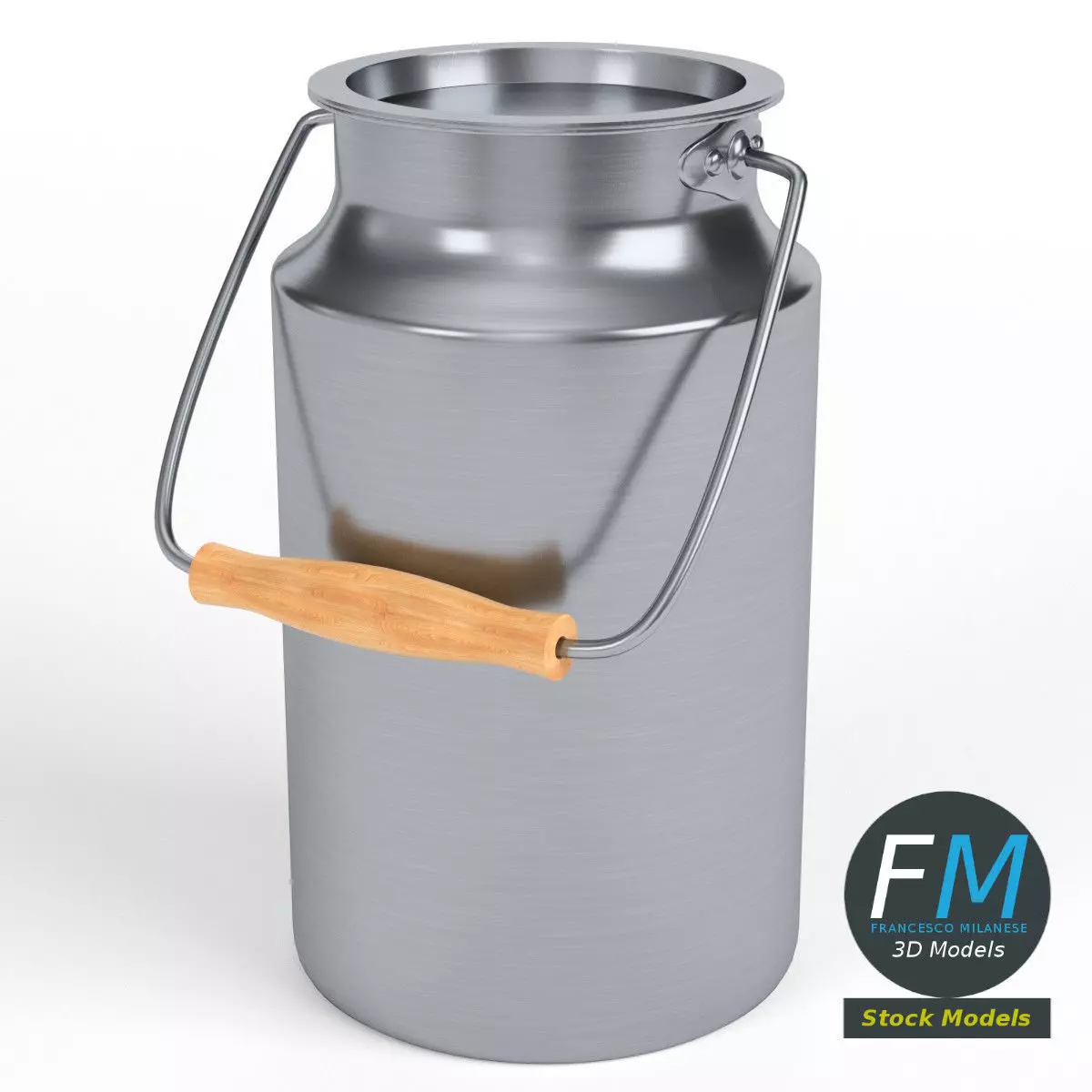 Stainless steel milk container 3D Model. 3 individual objects (container, handle, top), each one with its own non overlapping UV Layout map, Material and PBR Textures set. Production-ready 3D Model, with PBR materials, textures, non overlapping UV Layout map provided in the package.