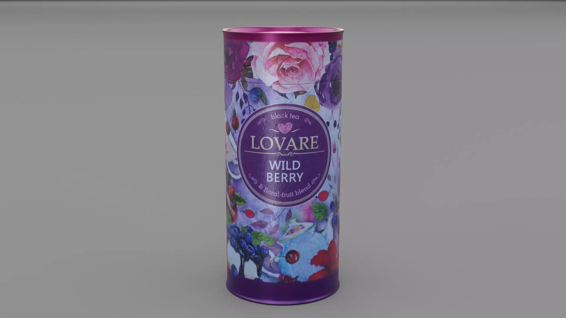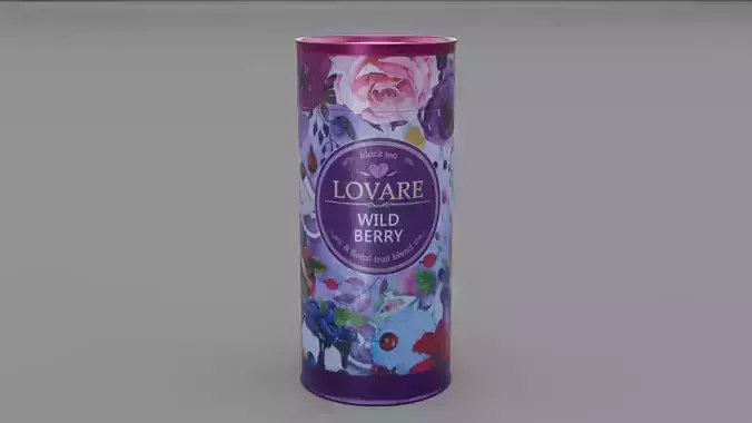 This is a photorealistic 3D model of the packaging of black tea.