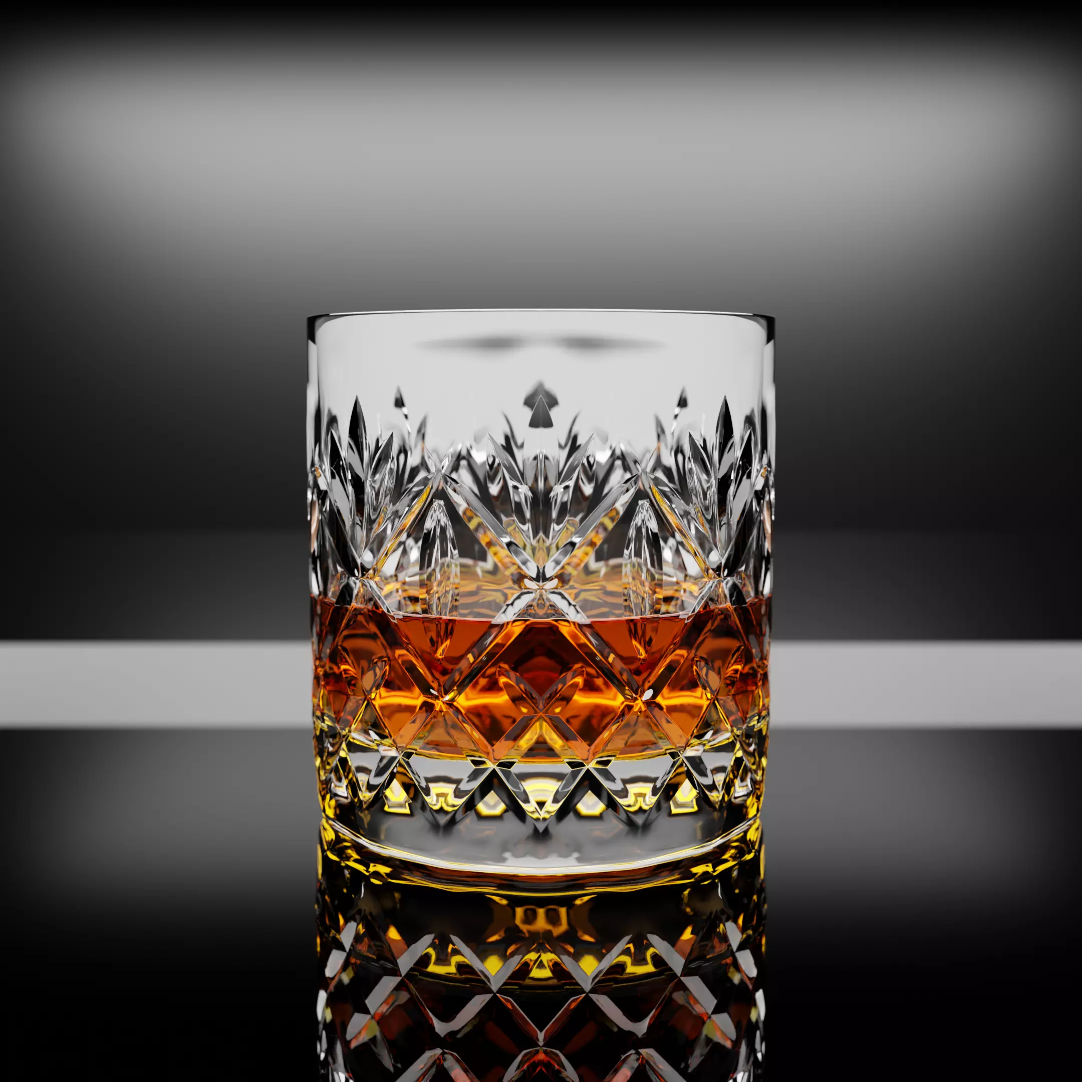 Introducing the Waterford-Inspired Whiskey Glass 3D Model, a meticulously crafted representation of classic elegance and sophistication. This 3D model, with 3,122 vertices and 3,224 faces, accurately captures the iconic diamond-cut pattern and intricate details found in Waterford Crystal designs.