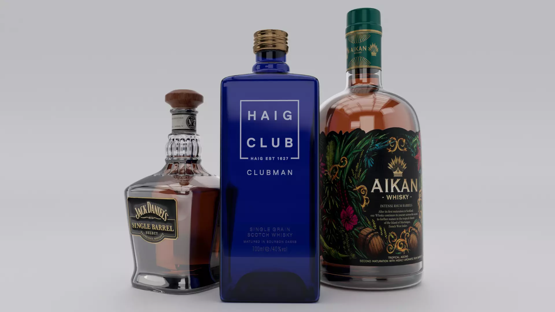 Whisky bottle pack Low-poly 3D model