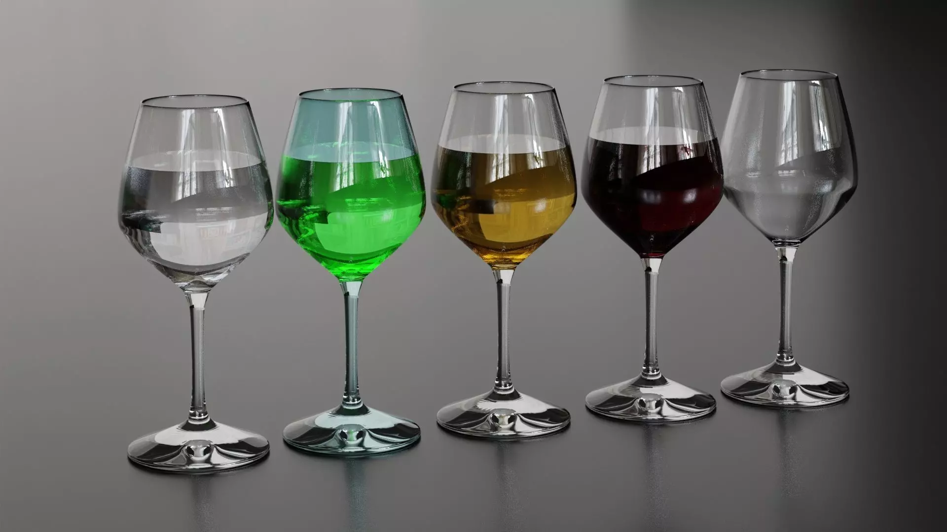 This is a high-quality 3D model of wine glass. I prepared five presets for you: