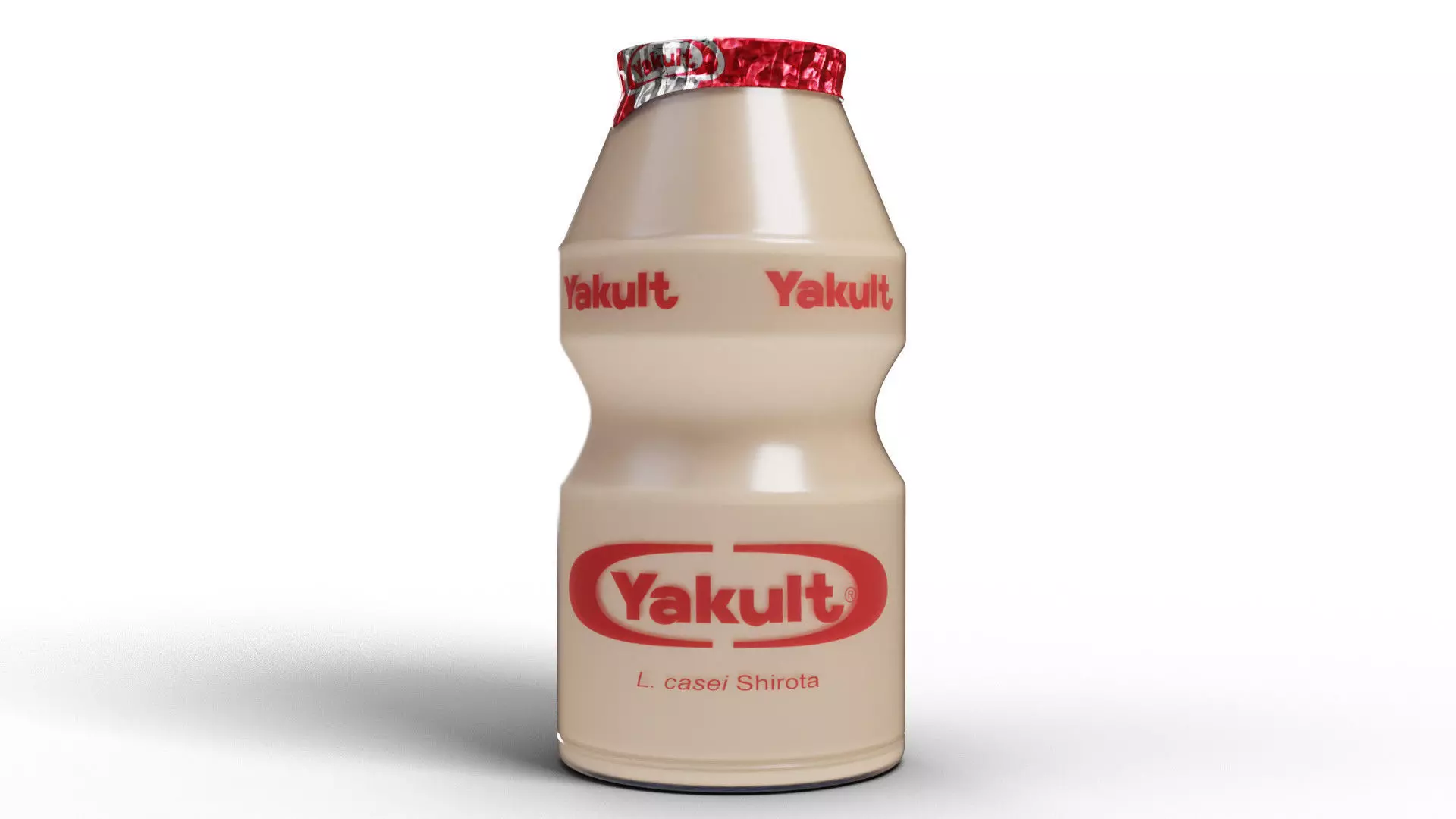 3D model of a Yakult bottle, the popular probiotic milk beverage. Project includes multiple instances of the model, for more populated scene.Model was built in real-world scale, based on real existing object. Units used centimeters. This model is ideal for photorealistic visualizations.Carefully shaped with accurate proportions. Clean and optimised topology is used for maximum polygon efficiency. All objects are properly named and presented as separate parts.Materials are partly textured and partly procedural. Image textures are provided and UV mapped for bottle label and cap.Several exchange formats including .blend, .OBJ, .fbx, .DAE, .stlLegal Notice: The intellectual property depicted in this model, including any brand or trademark, is not affiliated with or endorsed by the original rights holders.Please notice that model does not include any backgrounds or scenes used in preview images.