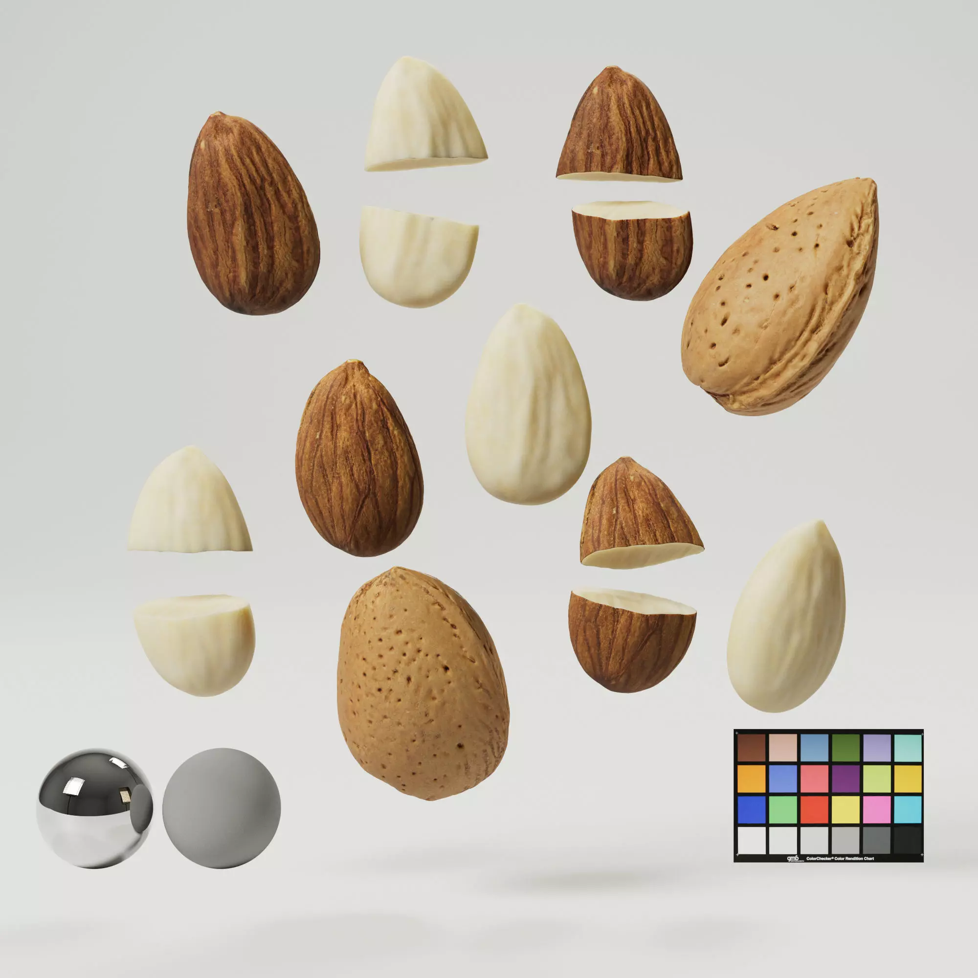You will receive photorealistic digital almonds with 8k texture maps. It has organized non-overlapping uvs and a decent topology which supports further editing and a lot of detail. With the 3D model (formats: fbx, obj) there is a diffuse, roughness, sss, displacement and normal map.