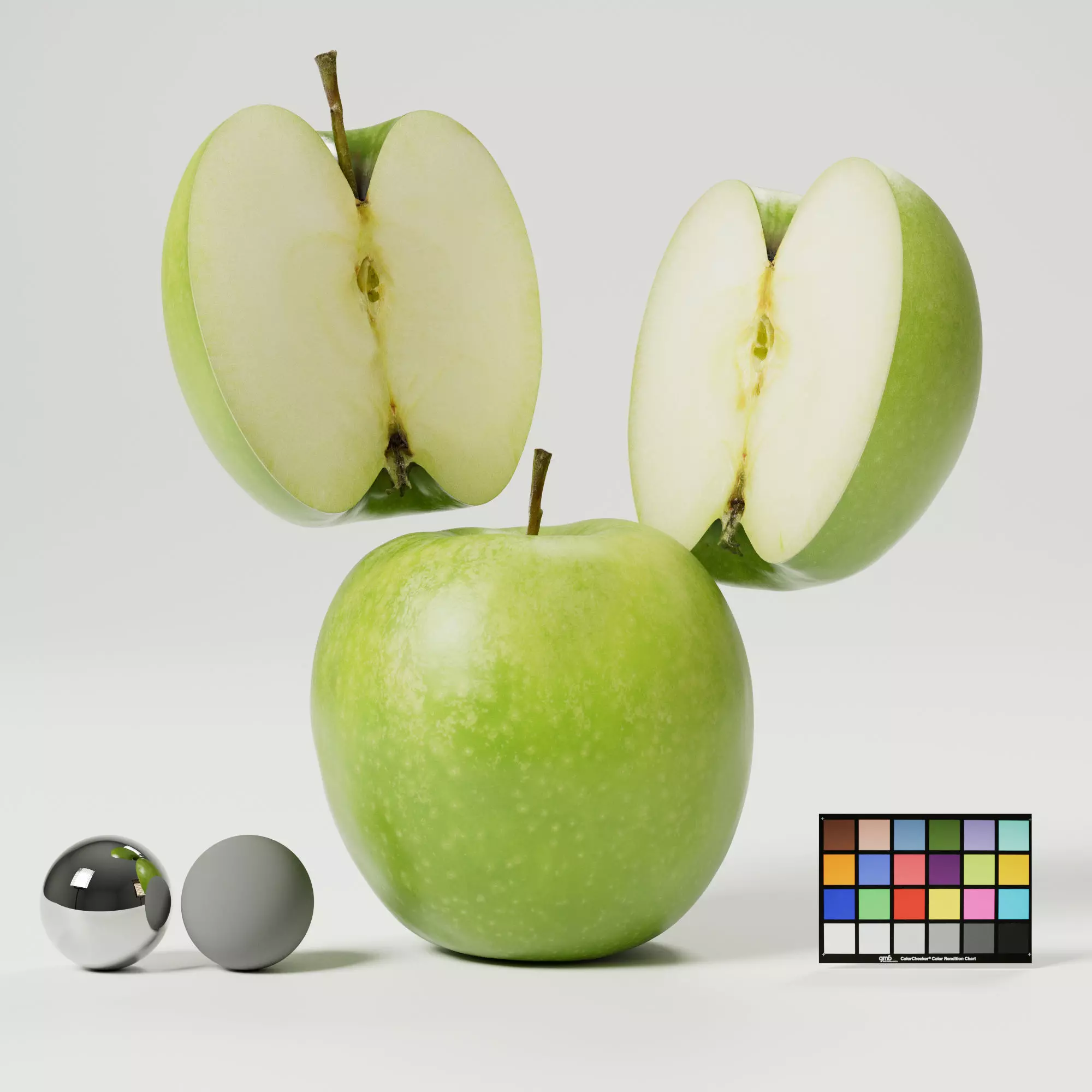 You will receive a full, 2 halfs of a photorealistic digital apple with 8k texture maps.It has been scanned with 300+ photos and digitalized with a photogrammetry software.It has organized non-overlapping uv`s and a decent topology which supports further editing and a lot of detail.With the 3D model (formats: fbx, obj) there is a diffuse, roughness, displacement and normal map.