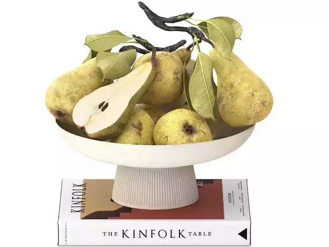 bowl of pears fruit with kinfolk book