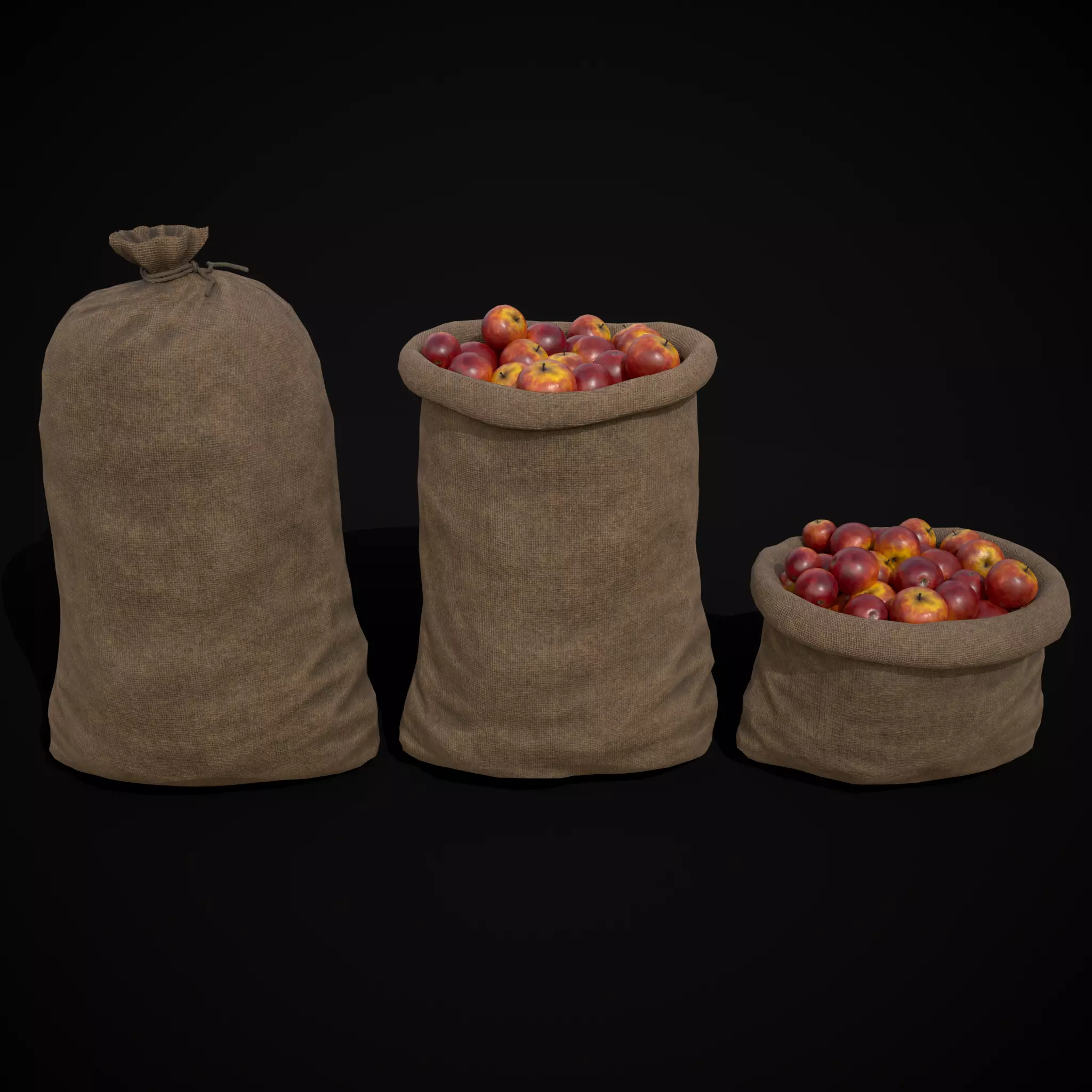 Burlap Sacks of Red Apples Low-poly 3D model