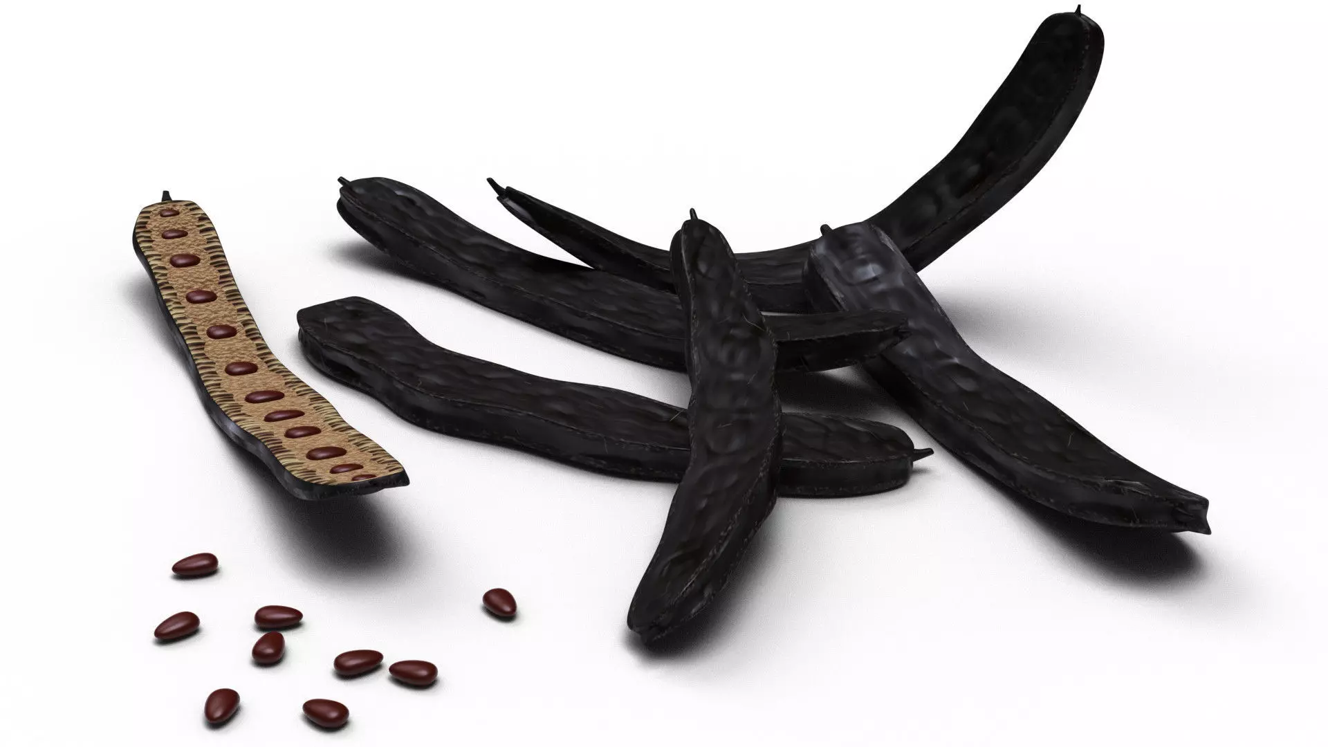 3D model of carob fruit pods. Materials are procedurally generated. Easily customize pod shapes through lattice and deform modifiers.Objects are carefully shaped with accurate proportions. Clean and optimised topology is used for maximum polygon efficiency. All objects are properly named and presented as separate parts.This model is ideal for photorealistic visualizations.Several exchange formats including .blend, .OBJ, .fbx, .stl, .daePlease notice that model does not include any backgrounds or scenes used in preview images.