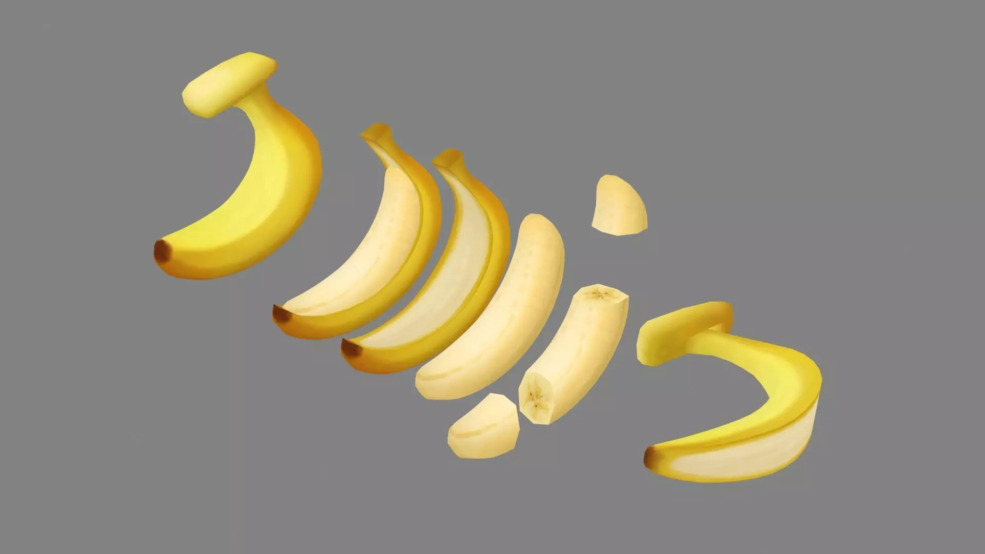 Cartoon banana peel and slice Low-poly 3D model