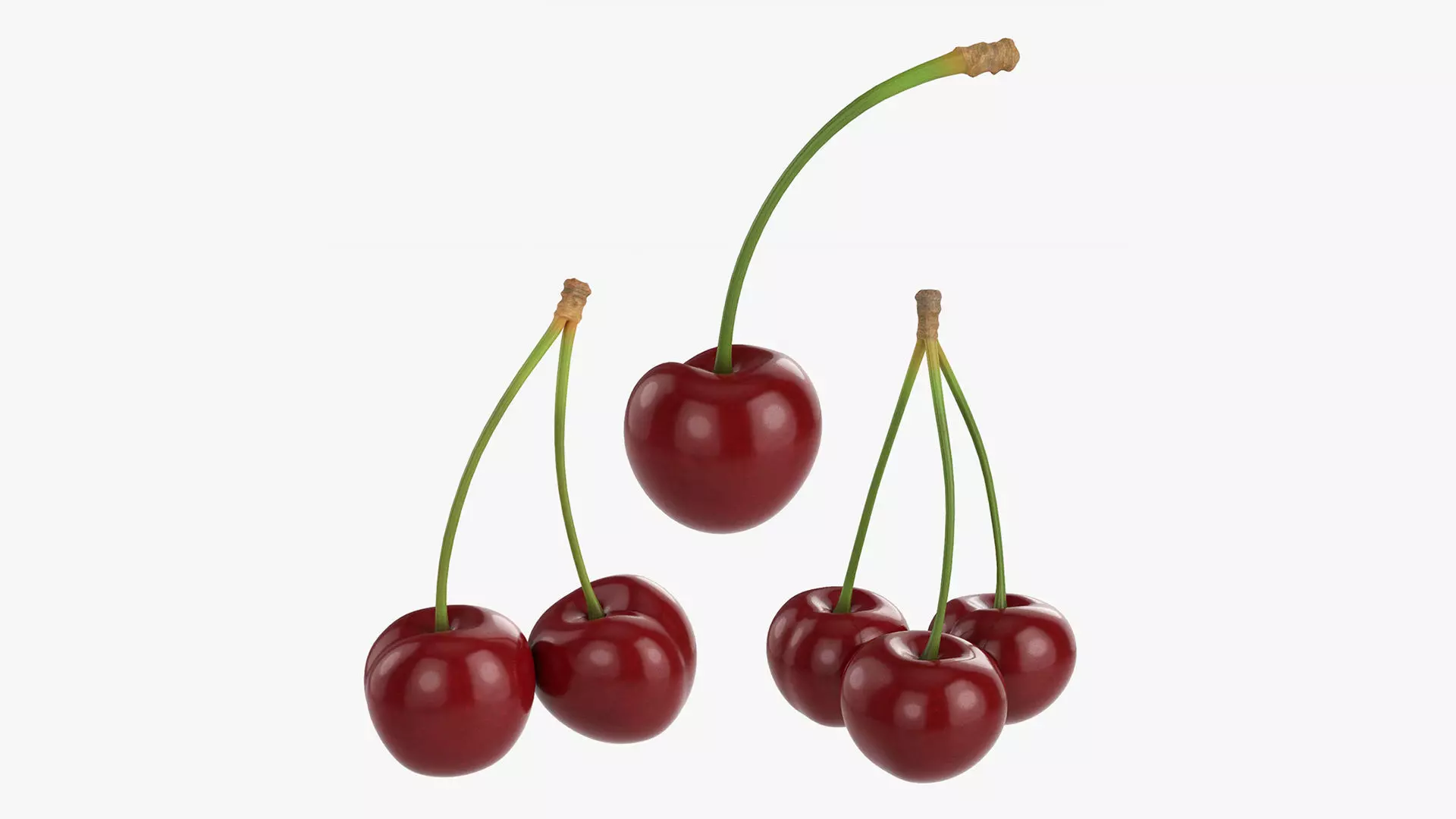 Cherries single double triple 3D model