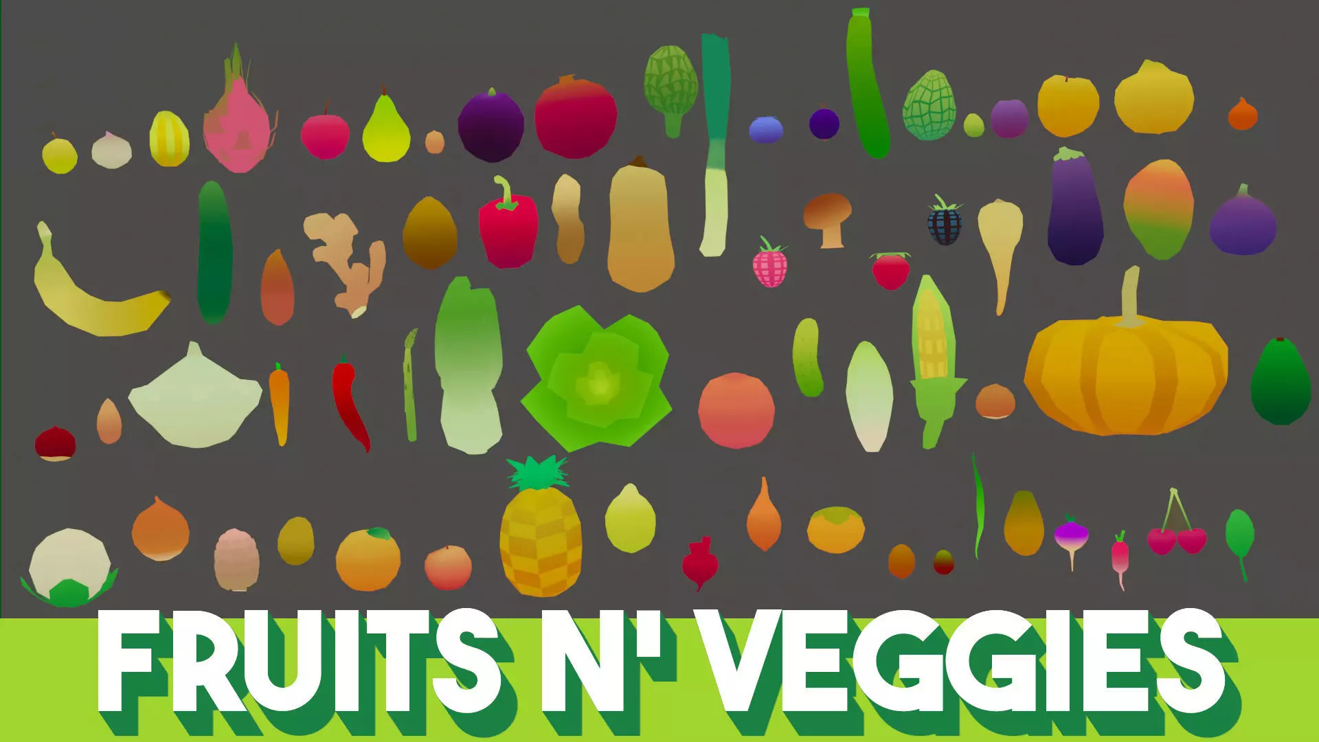 The Fruits n’ Veggies Art Pack contains over 70 low-poly stylized assets of various fruits and vegetables. Works for mobile **and **PC, with most modern game engines such as Unity, Unreal **and **Godot.
