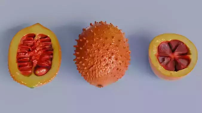 Introduce a splash of tropical vibrancy to your 3D asset collection with this high-poly model of Gac fruit (Momordica cochinchinensis)—a rare and exotic fruit native to Southeast Asia, especially Vietnam, Thailand, and Indonesia. Known for its spiky orange rind and rich red interior packed with nutrients, Gac is often used in traditional dishes and herbal remedies. This model showcases three detailed views: a whole fruit with its textured spiked surface, and two cut-open versions revealing the segmented, seed-filled interior and star-shaped core. Perfect for food visualization, botanical studies, or stylized renderings.The model is available in BLEND, FBX, OBJ, STL, and GLB formats, compatible with most 3D workflows. While the STL format makes it possible to 3D print, please note that editing, customization, and adjustments are required to optimize printability—especially for the spiky surface and internal structure. The mesh is high-poly with unclean topology, so retopology is recommended before using in production, animation, or printing.