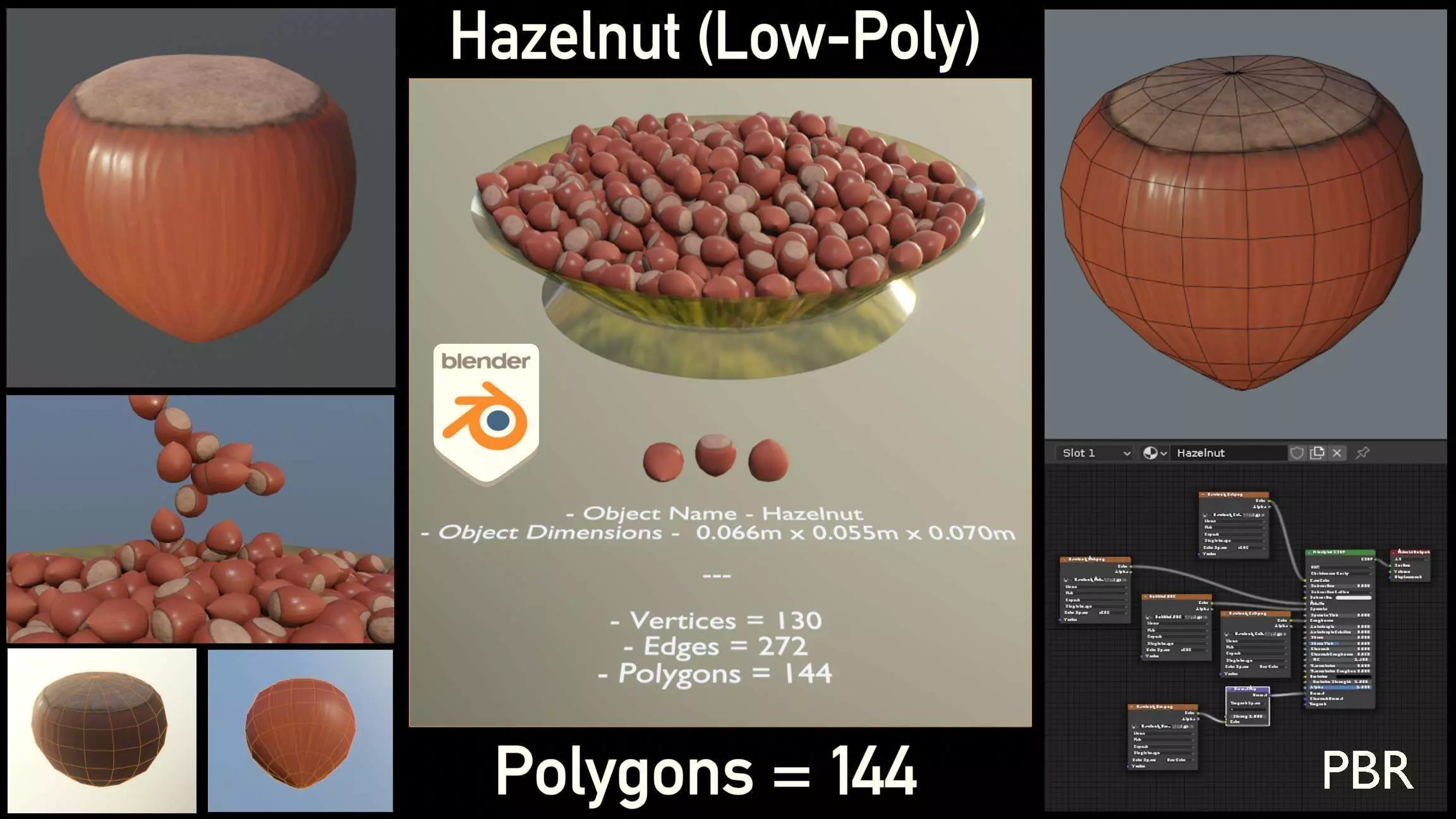 Here is a low-poly modelled hazelnut with 2k PBR texture-set.
