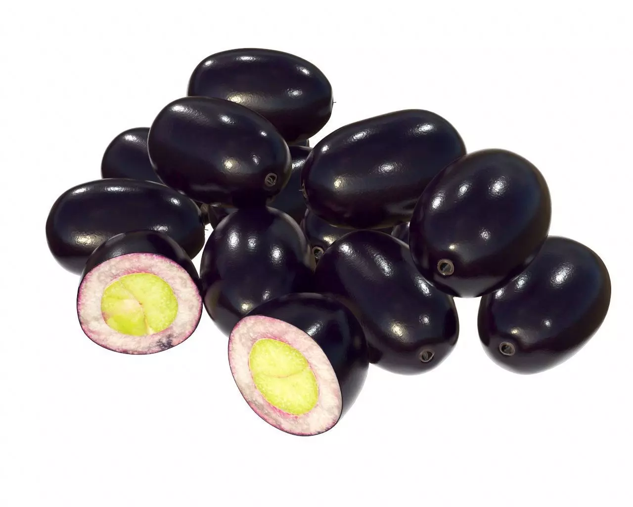 Jambolan plums whole and half sliced 3D model