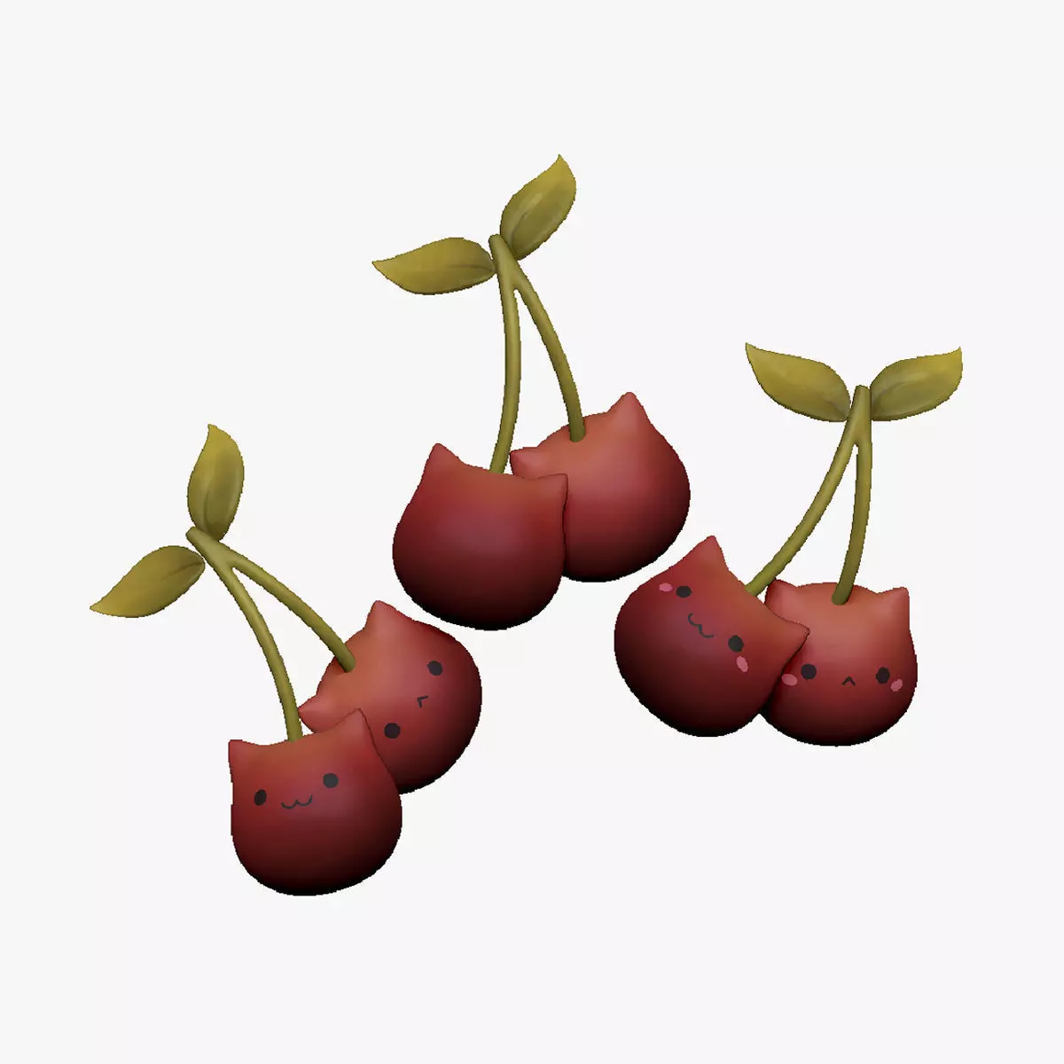 Low poly Cherries - 3 Variations: No face drawn on them, face only, face with blush.