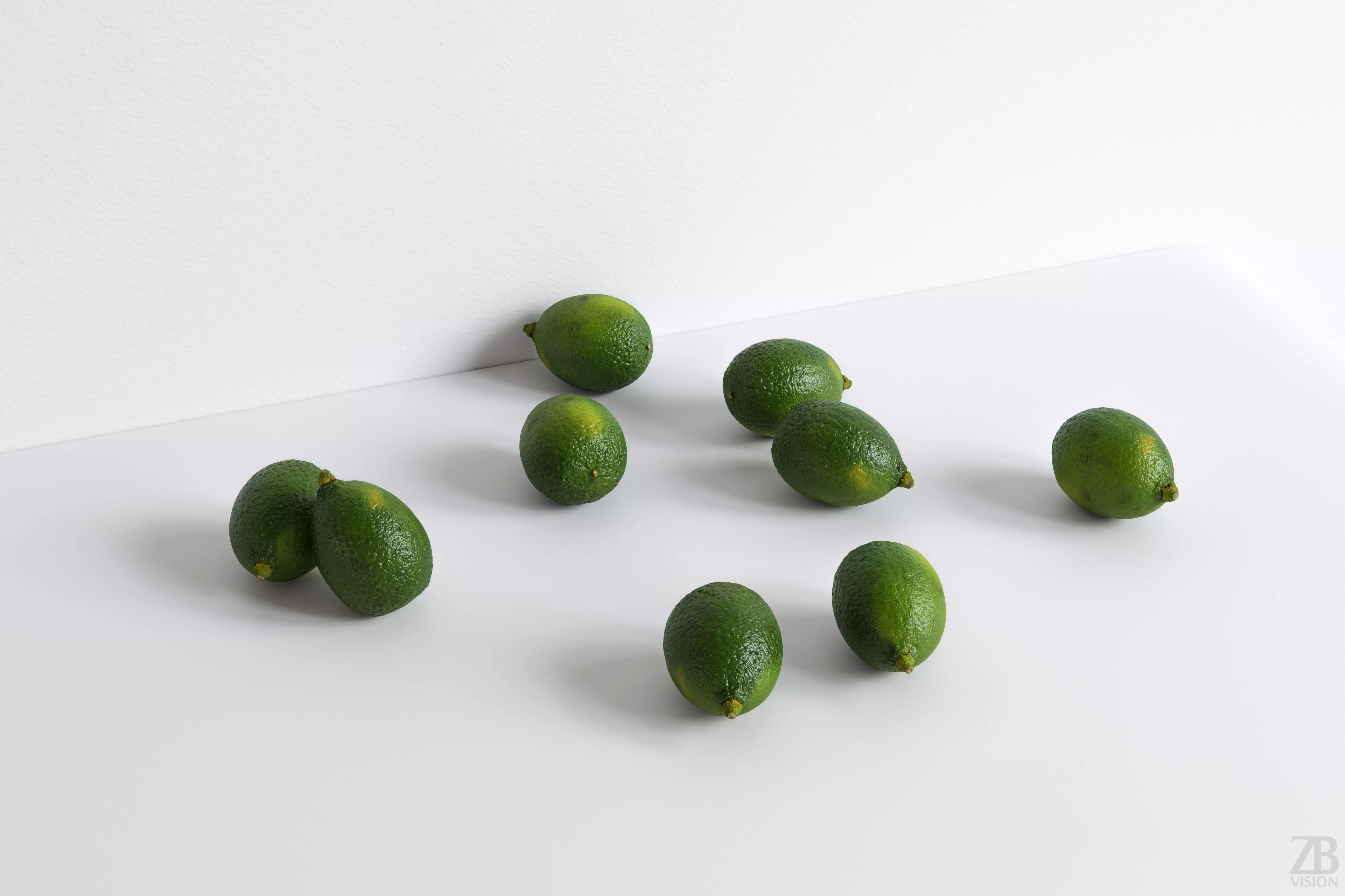 The lime model is presented as a single mesh in 3 subdivision levels: low, mid, and high. Meshes are quad-based. The polycounts are 2K, 41K, and 670K. The high-detail model is included in .max, .fbx, and .obj formats.