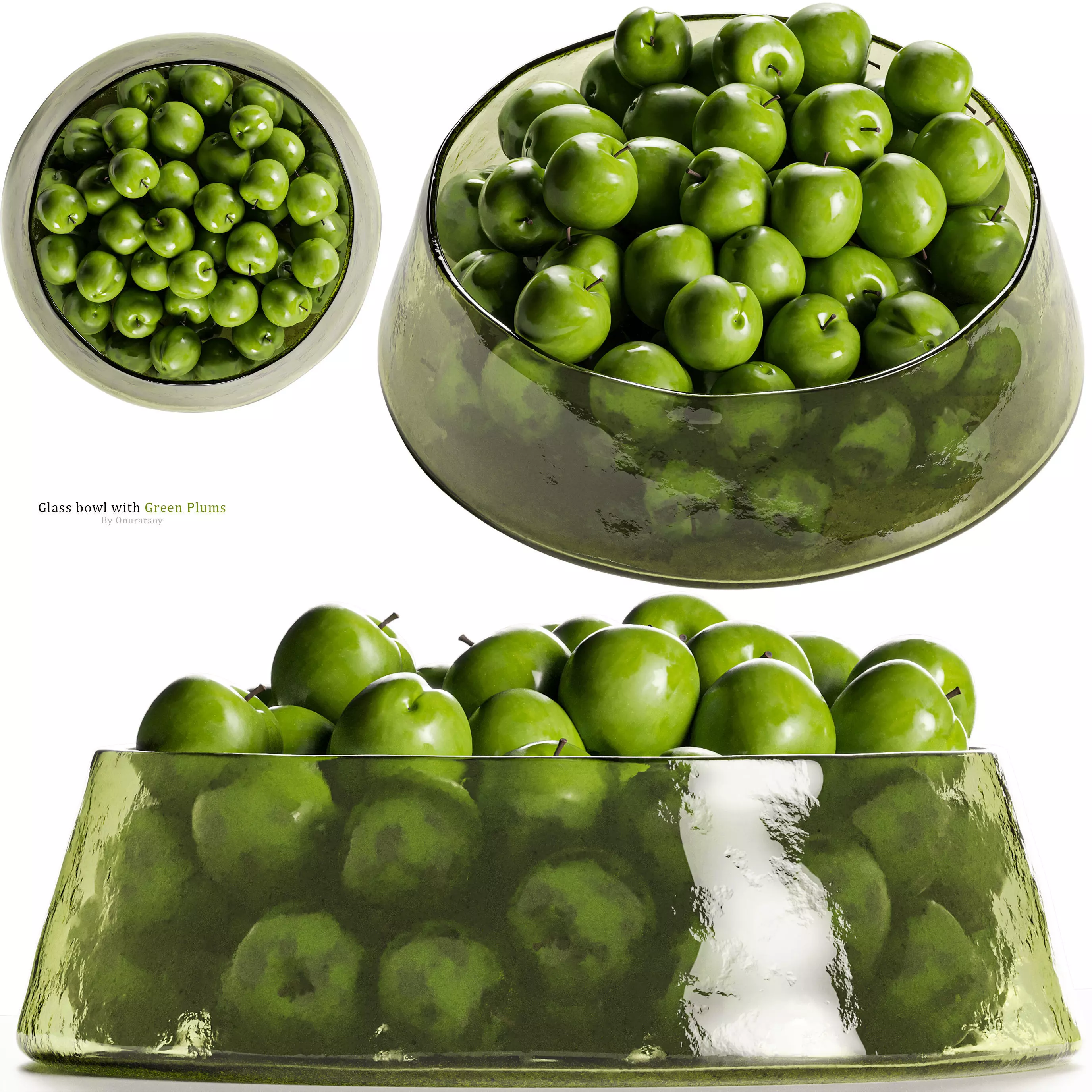 Low Glass Bowl Centerpiece with Green Plums4k texturesenjoy