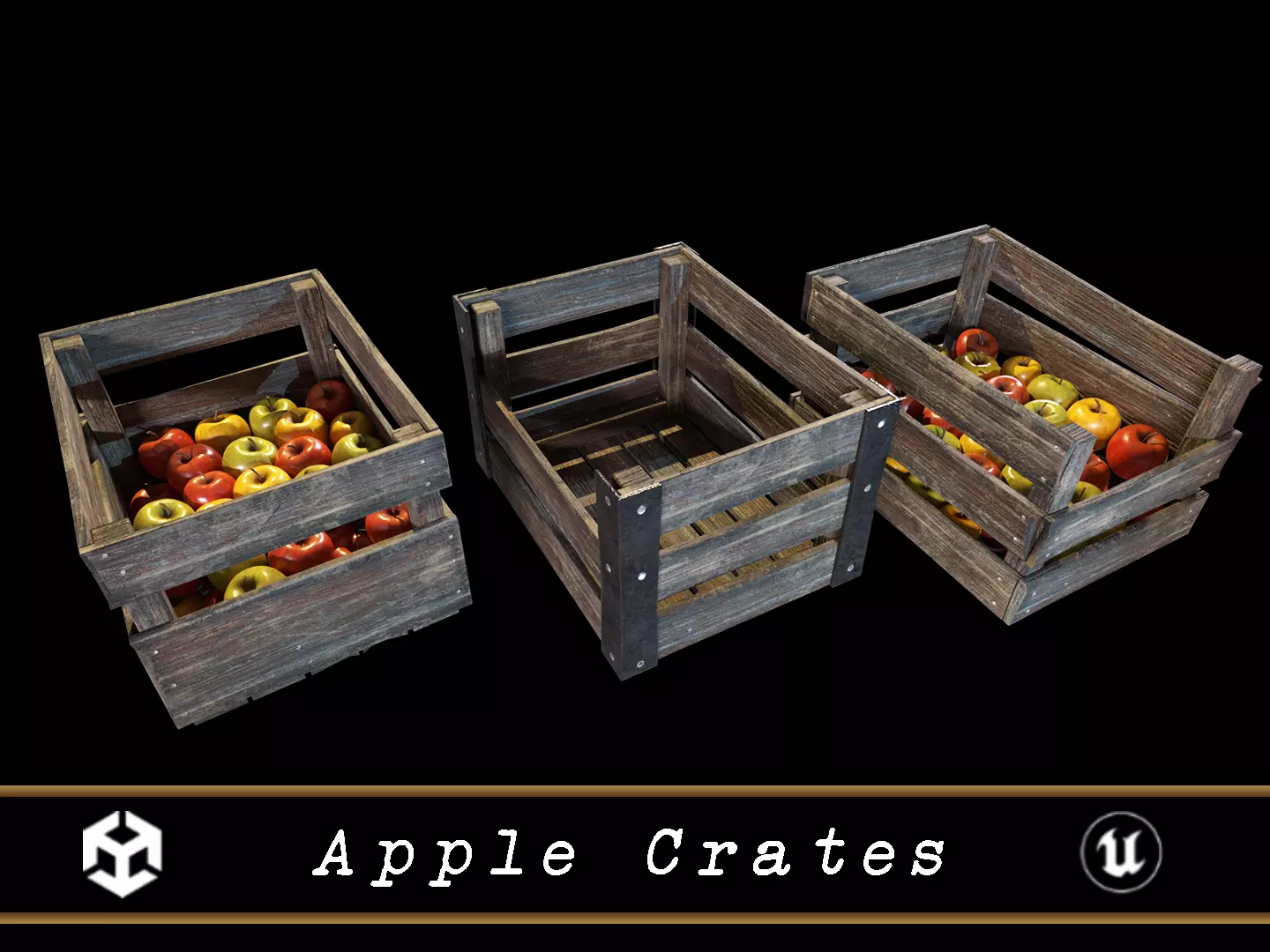 The model was built to scale and is UV unwrapped properly. Contains two texture sets: one for the crates and one for the apples.