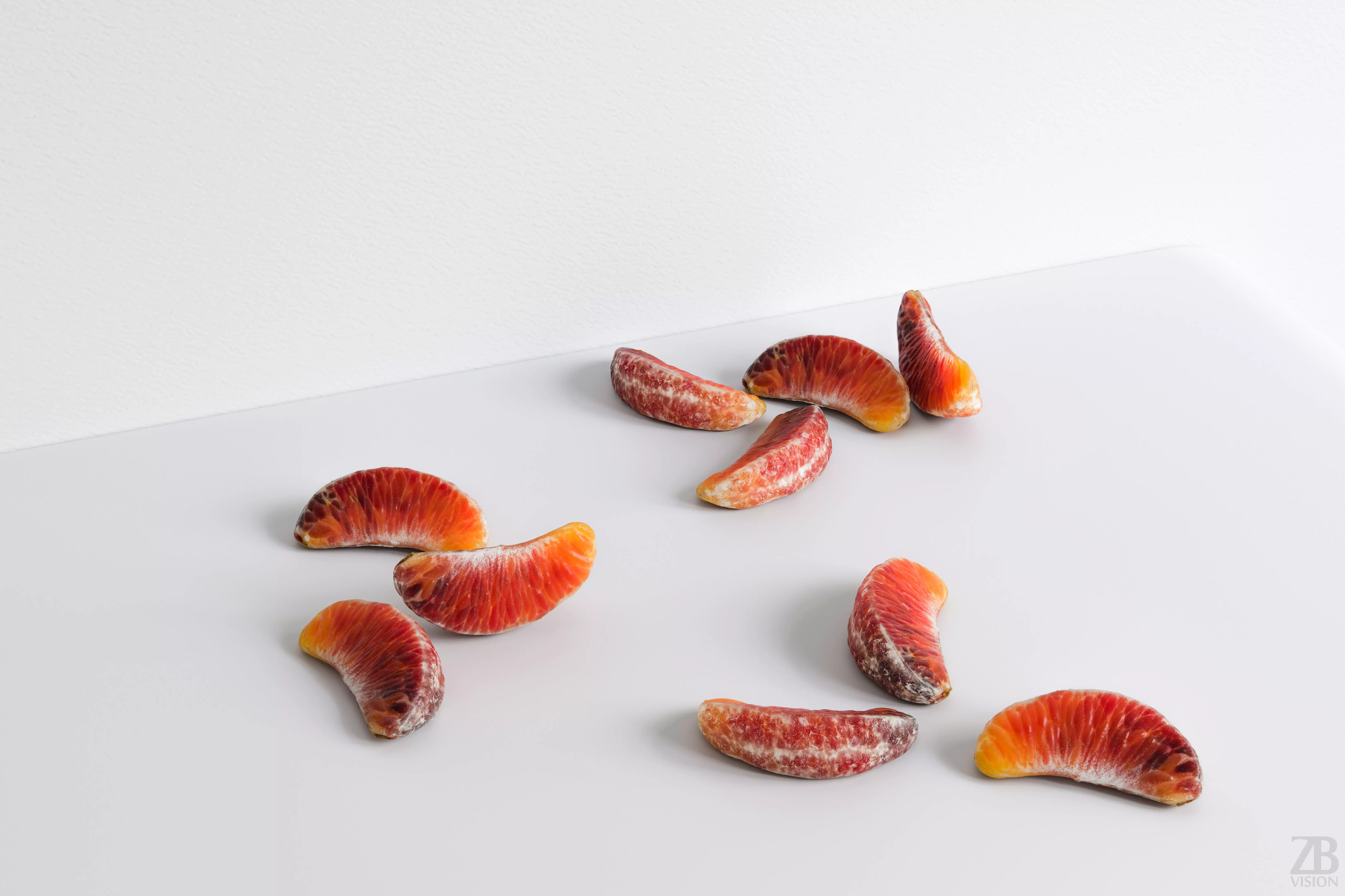 This is a 3d model of a blood orange piece, Dracula Australia variety. It was scanned and prepared for photorealistic renderings, close-ups, stills and animation. The orange model is ready to be inserted in your scene out of the box.
