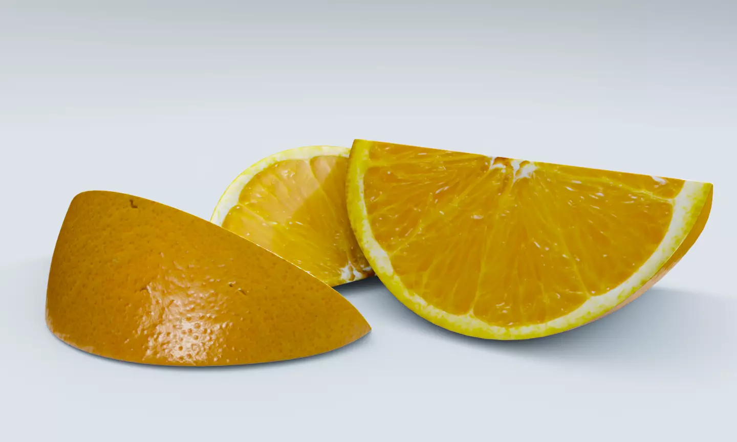 Orange fruit slice 3D model created based on real referance. It’s created accurately and qualitatively, in real units of measurement. Contains a quarter sliced orange model.