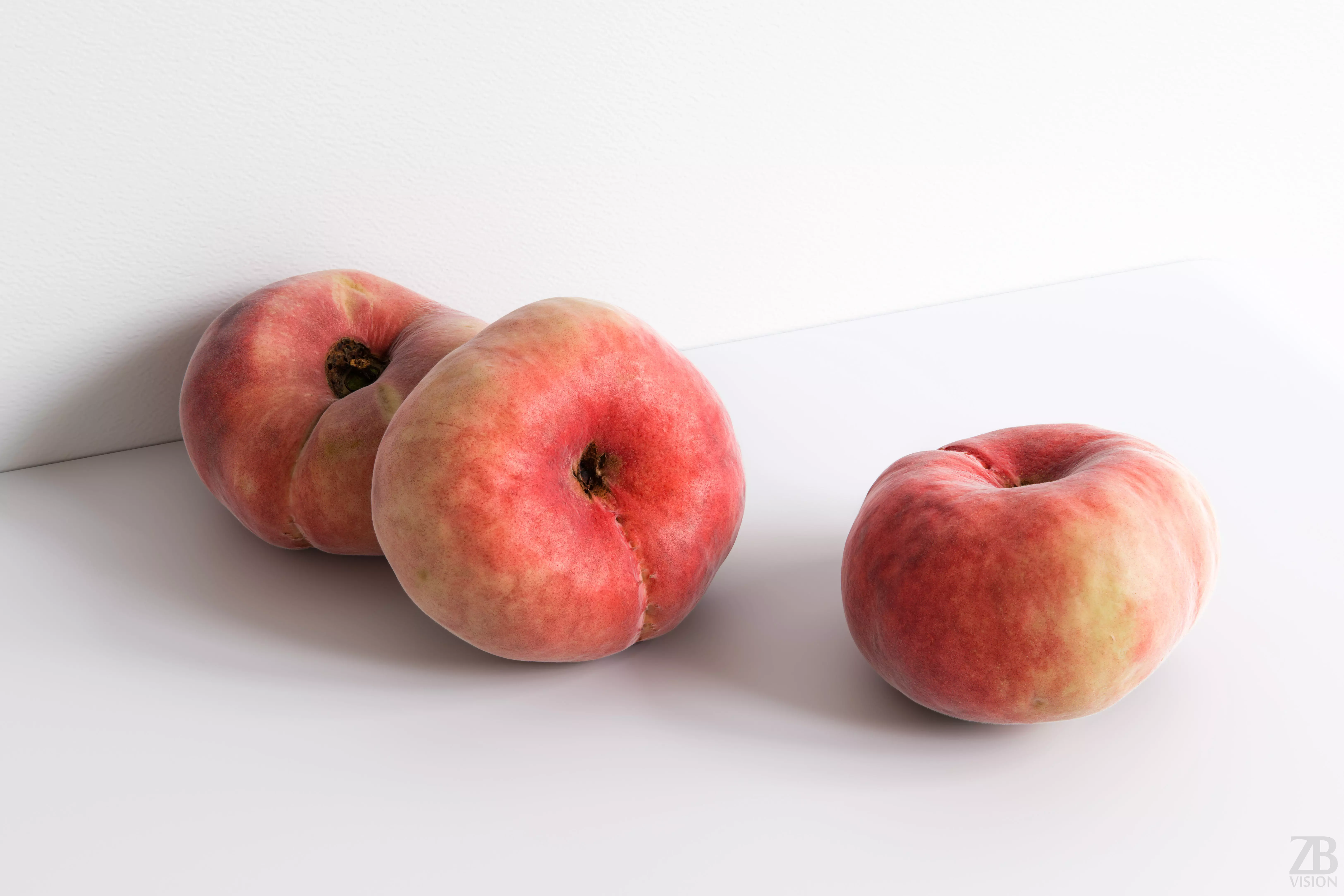 This is a 3d model of a doughnut peach. It was scanned and prepared for photorealistic renderings, close-ups, stills and animation. The peach model is ready to be inserted in your scene out of the box.