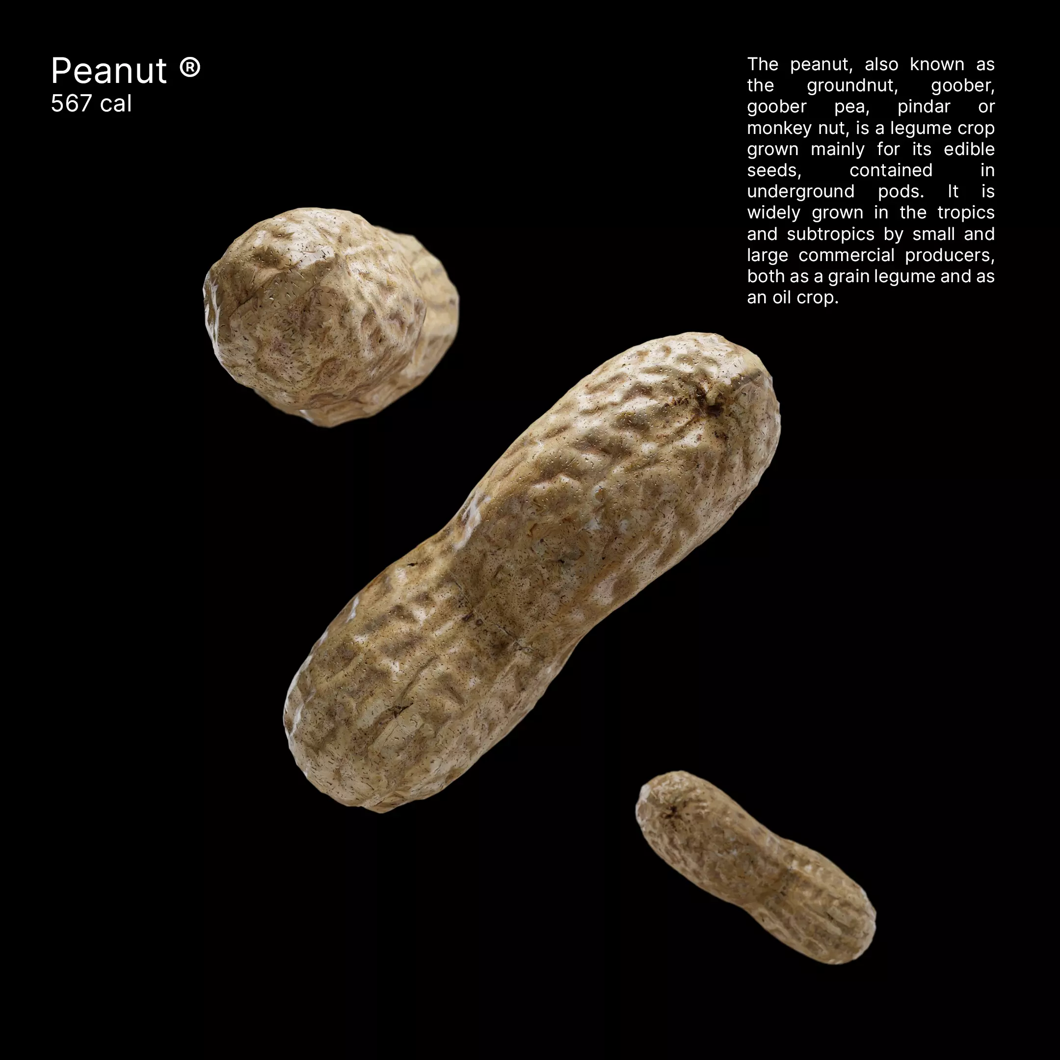 High-quality peanut model with clean topology and hand-crafted PBR textures (Albedo, Normal, Roughness, AO, Height). Sculpted for realistic detail and optimized for both close-up renders and real-time use.